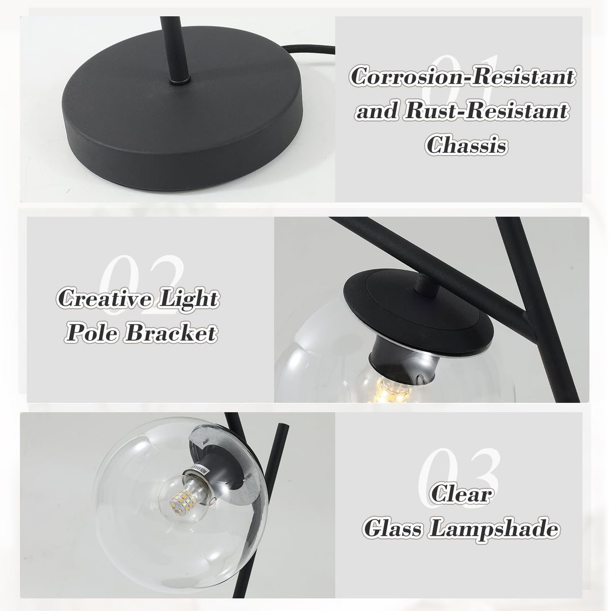 Q: What safety features does the lamp have?A: The lamp is designed with a stable base and a metal pole, ensuring good stability and user safety.