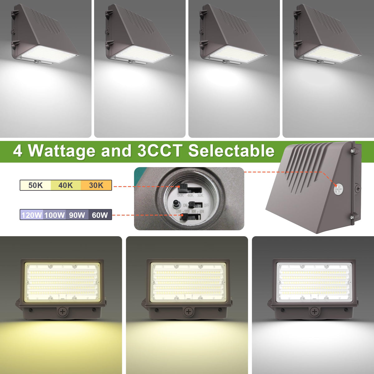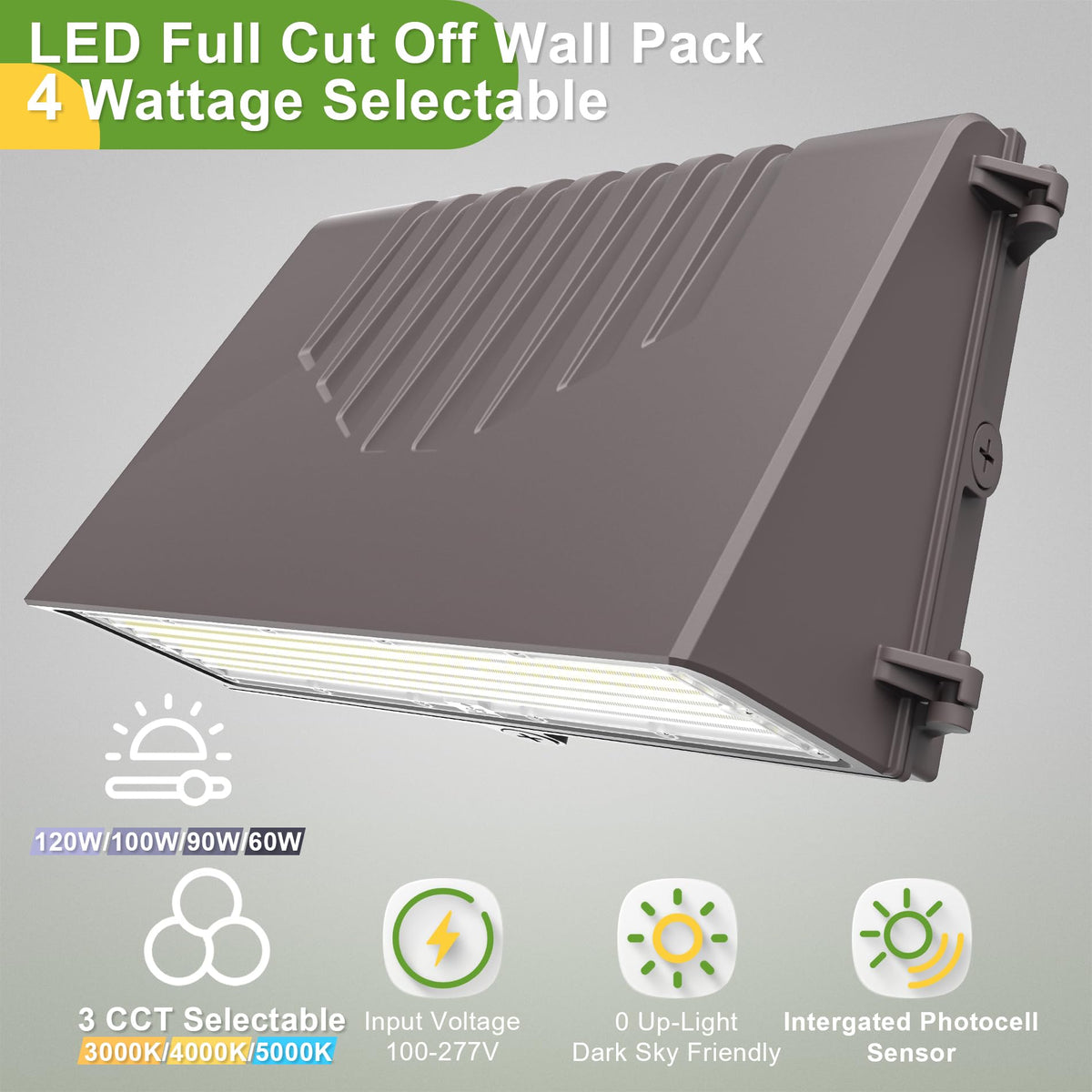 Full Cut Off Led Wall Pack Light, Adjustable Power (60W/90W/100W/120W) & Cct (3000K/4000K/5000K), Optional Photocell Sensor, Ul