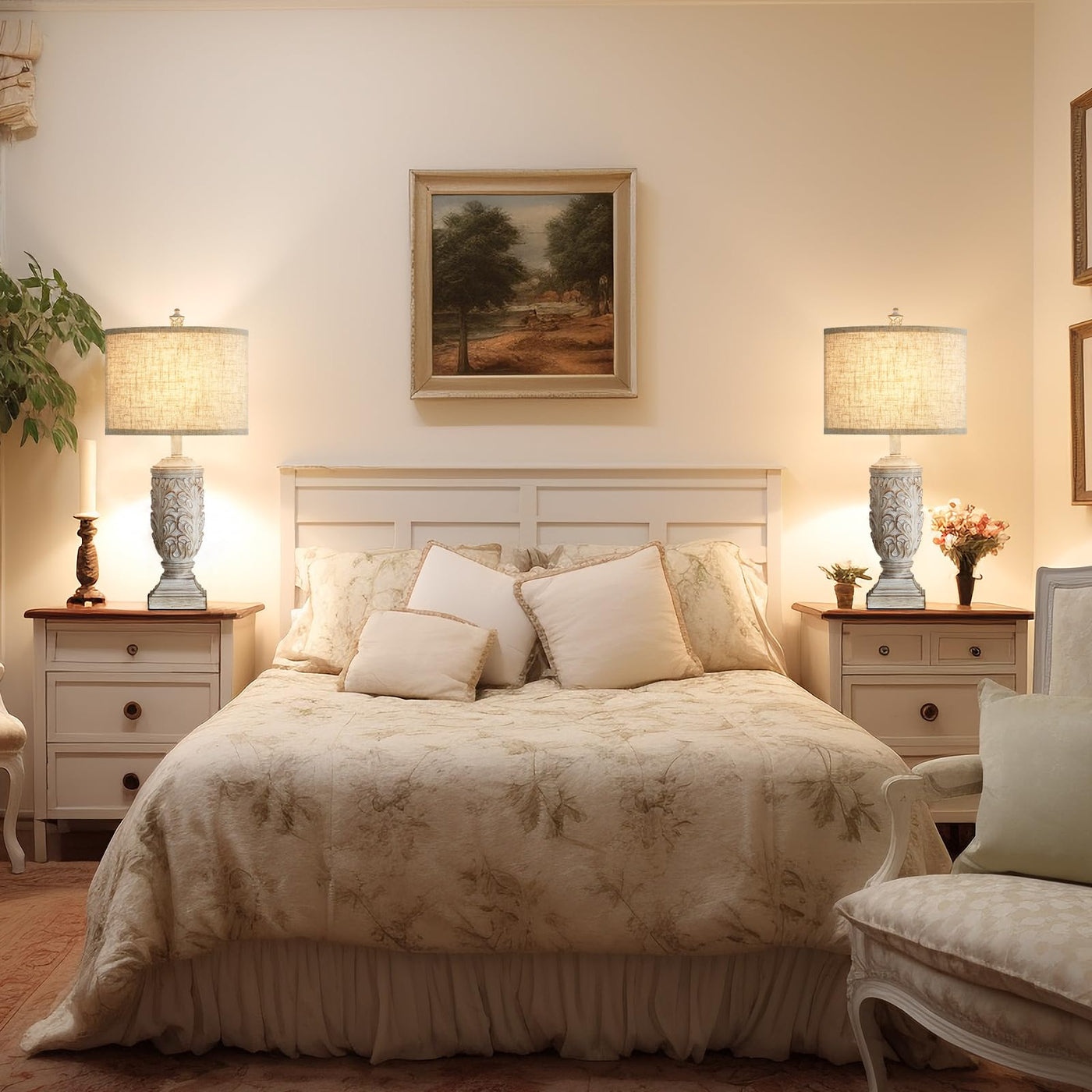 Illuminate your space with the Fullarge Rustic Table Lamps Set, a perfect blend of style and functionality ideal for any living room or bedroom. This set of two large lamps brings a touch of farmhouse charm to your home, combining vintage aesthetics with modern convenience.