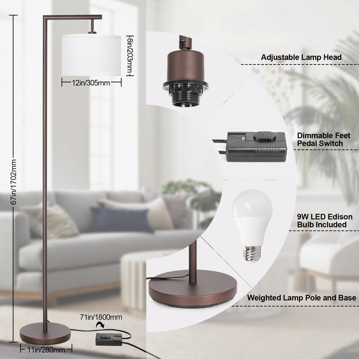 Fully Dimmable Floor Lamp Brown, Arc Floor Lamp For Bedroom With Adjustable Hanging Shade & Foot Switch, Modern Standing Lamp Co