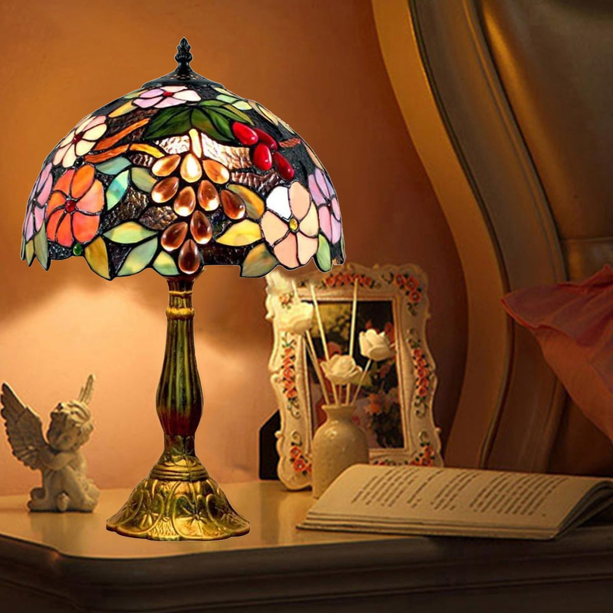 Fumat Tiffany Table Lamp For Living Room Stained Glass Grape Rose Hand-Made Table Lamp For Bedroom 12X12X18Inch Tall Bedside Nig