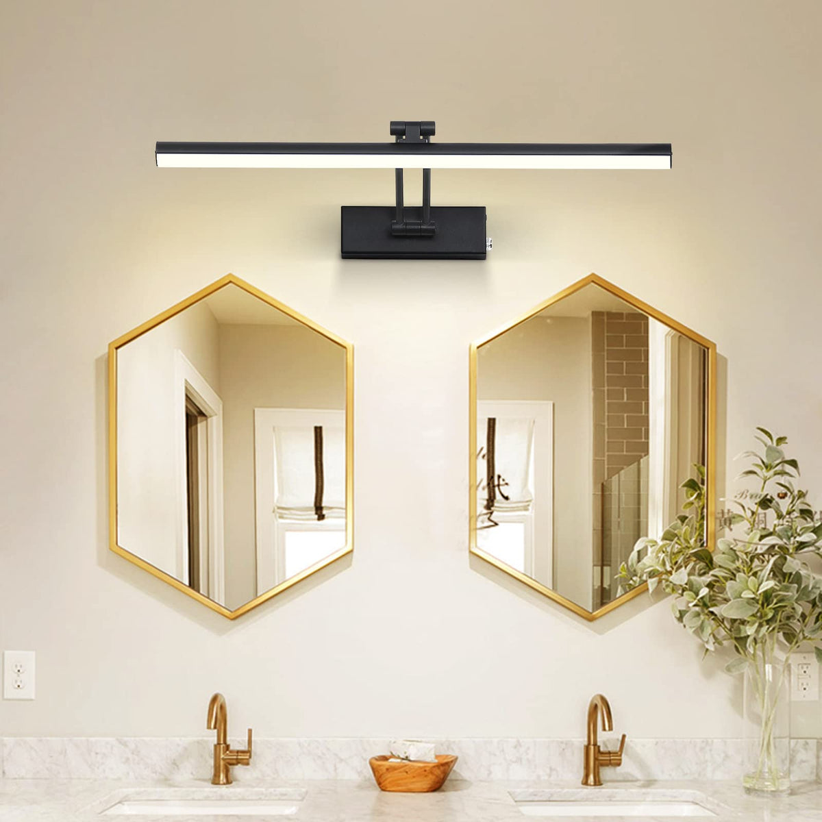 MORE DETAILS * Material: Metal and Aluminum * Power Source: 5000mAh rechargeable battery * 48pcs super bright LED. 1.1W, 280Lumens * Each light tube can be turned 150 up or down, rotate each light head independently to desired angle. * Installation Steps: 1. Drill two pilot holes in the location where you want to mount the picture light. Place screws (included) in pre-drilled holes. Tighten slightly until secure, but do not tighten all the way. Slide EZ Mount Bracket 2. Once you confirm that the bracket is level, tighten the screws to secure it to the wall. Take care not to over tighten. 3. To hang the picture light on the mounting bracket, align the picture light with the mounting bracket and slide the unit down. Picture light will lock into position. 4. To remove the picture light from the mounting bracket: A) Hold the picture light by the base (not light head). B) Slide the unit up. C) Once the body releases from mounting bracket, pull the unit out. PACKING LIST - 1 x Picture Light - 1 x Remote Control - 2 x Screw - 1 x User Manual