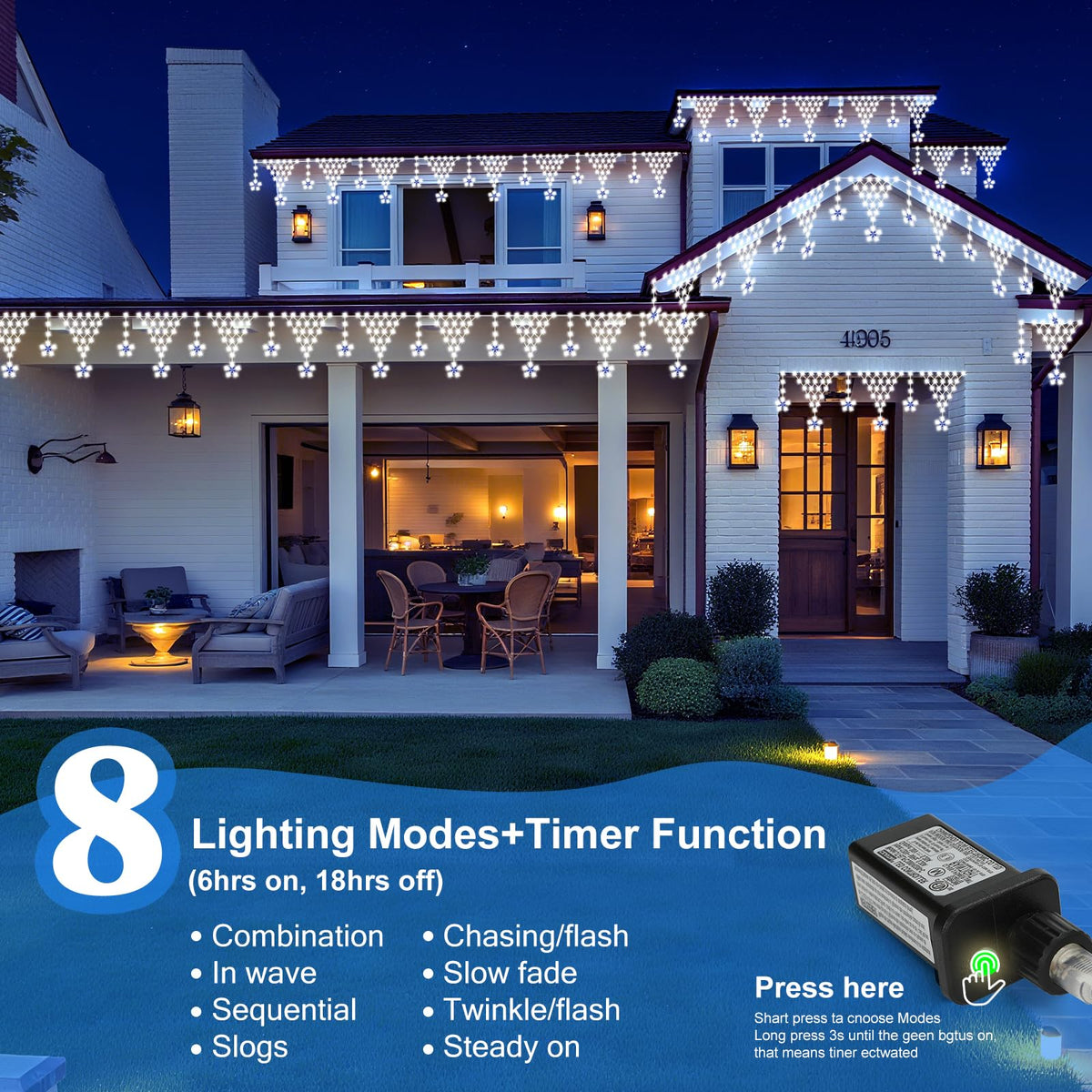 The Funiao Eave Lights In White Are An Elegant And Festive Addition To Your Outdoor Christmas Decorations. Perfect For Illuminating Eaves, Fences, Backyards, Balconies, And Even Living Rooms, These Lights Create A Warm And Inviting Atmosphere During The Holiday Season.
