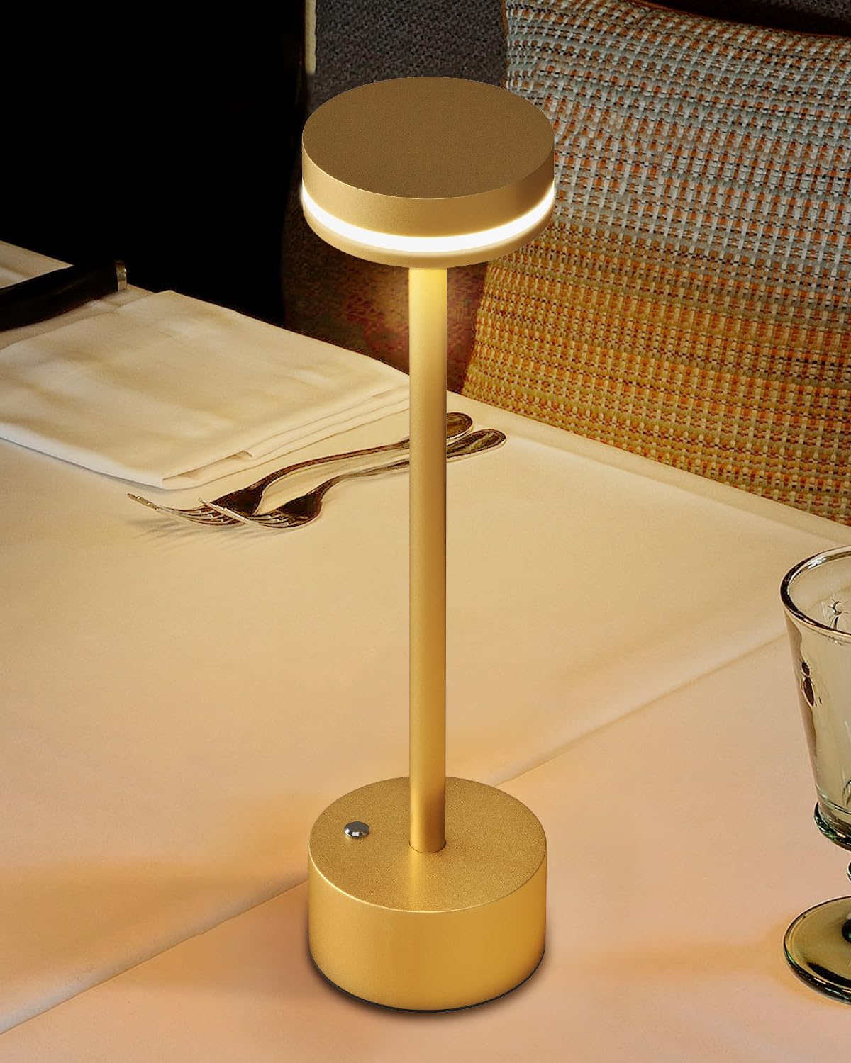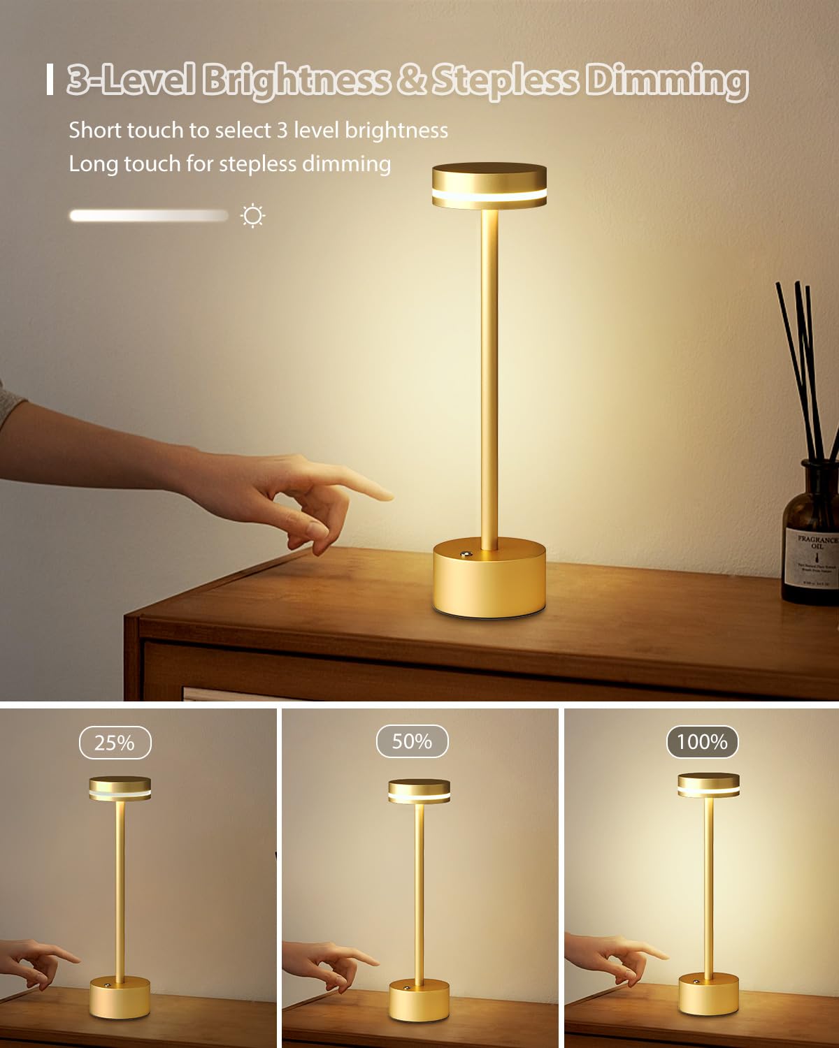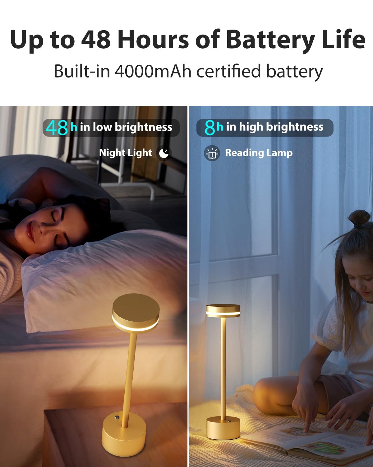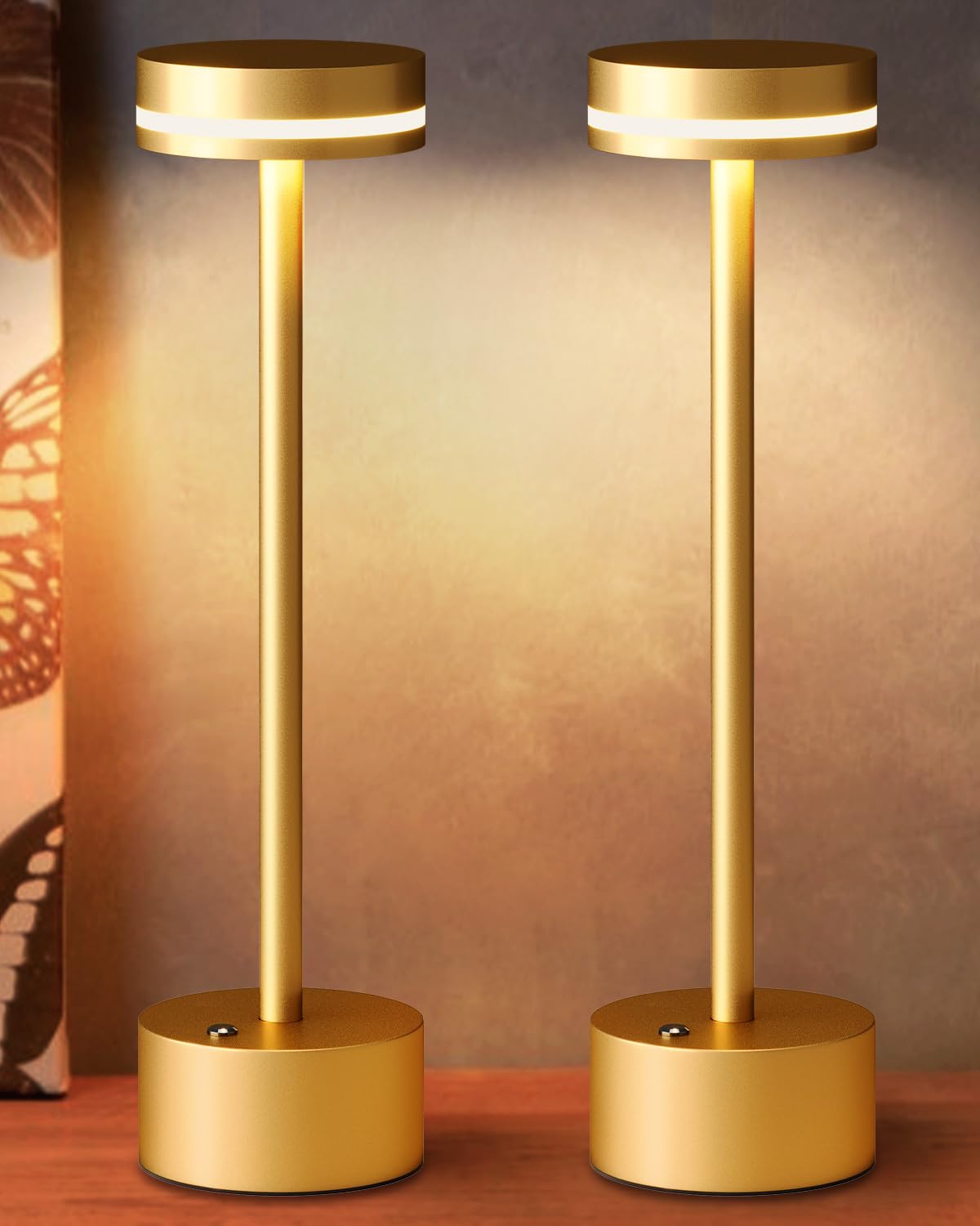 Funtaphanta Modern Rechargeable Cordless Table Lamp, Aluminum Shell Dimmable Battery Powered Lamp, 4000Mah Certified Battery, 3000K Portable Warm White Bedside Lamp, Pack Of 2 (Gold)