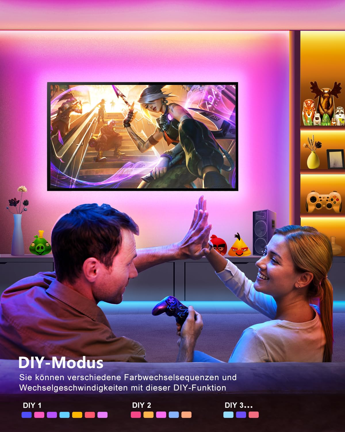 Q: Where can I install the Fussion Smart LED Strip Lights?A: These LED strip lights are perfect for a variety of applications. You can install them in bedrooms, dorm rooms, kitchens, behind TVs, around mirrors, or decorating staircases, creating a stunning ambiance in any space.