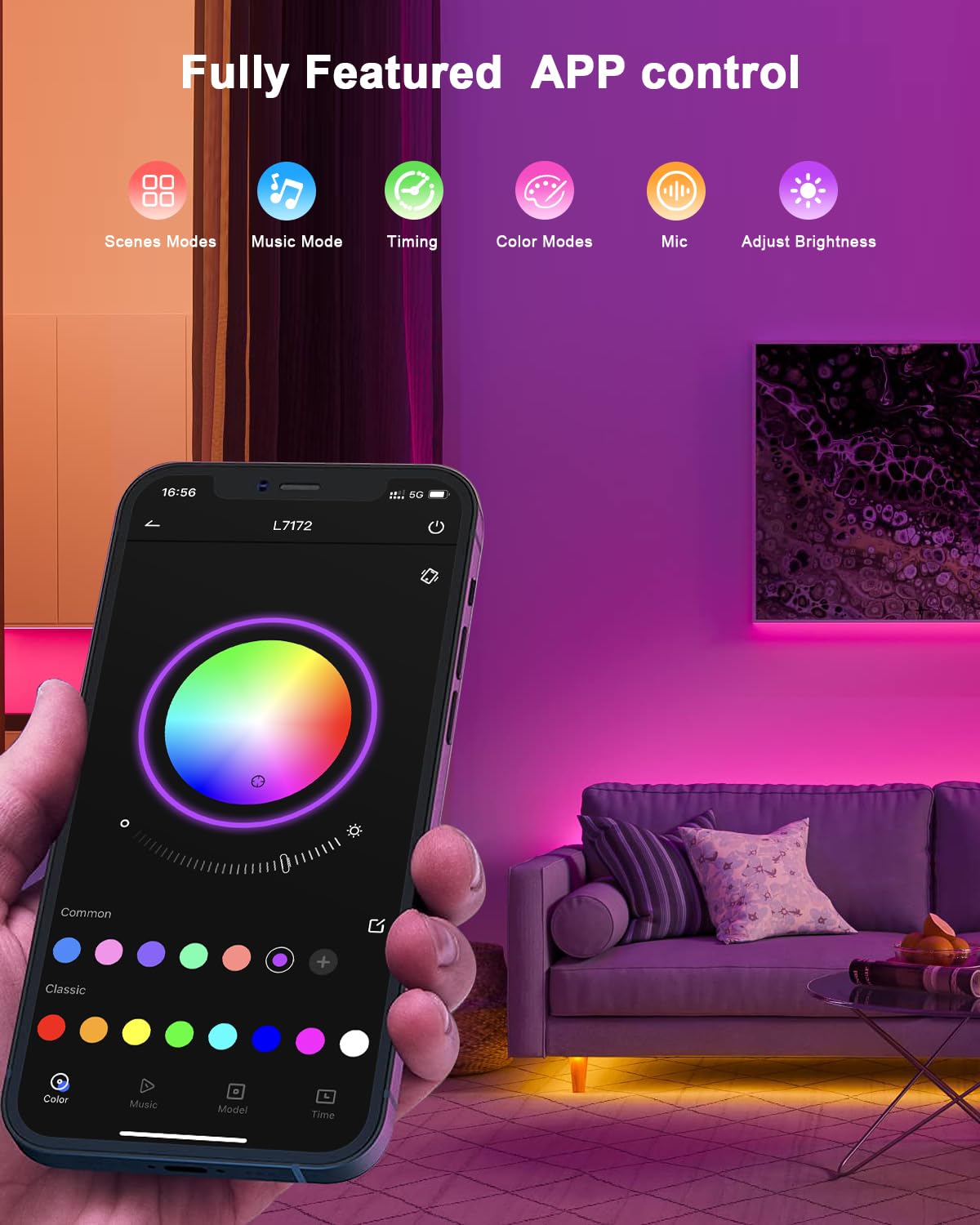 Q: How do I control the Fussion 130ft Smart LED Strip Lights?A: You can control the Fussion Smart LED Strip Lights in multiple user-friendly ways: download the app available on Google Play or the iOS App Store to adjust brightness and colors, use the sensitive built-in microphone for music sync, or utilize the upgraded 24-key IR remote for convenient operation.