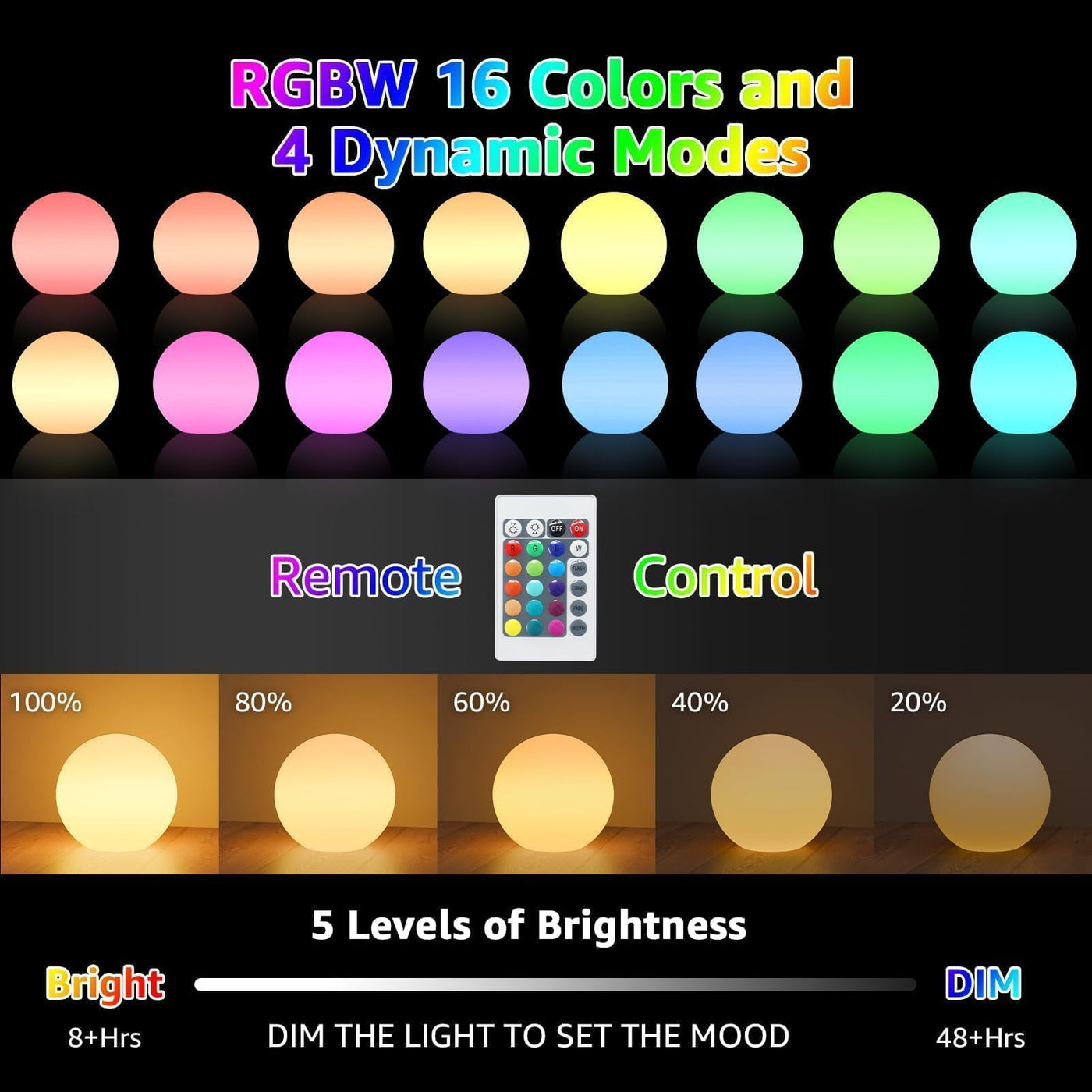 FUYO LED Ball Light, 10-inch Solar Light Up Pool Balls, Rechargeable & Remote Control Globe Lights 16 RGB Colors Mood Night Ligh