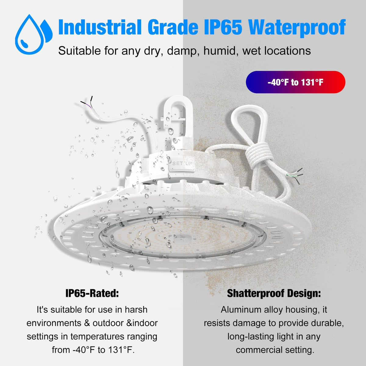 G Gjia High Bay Led Shop Lights For Warehouse Barn Factory, 5000K Daylight, 100-277V, Dimmable 0-10V, Waterproof, Commercial Bay Lighting, Super Bright, Ul