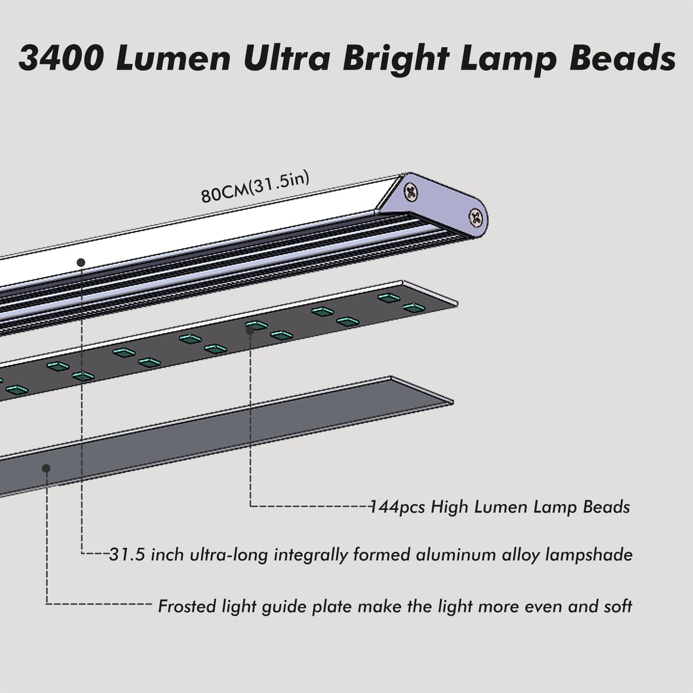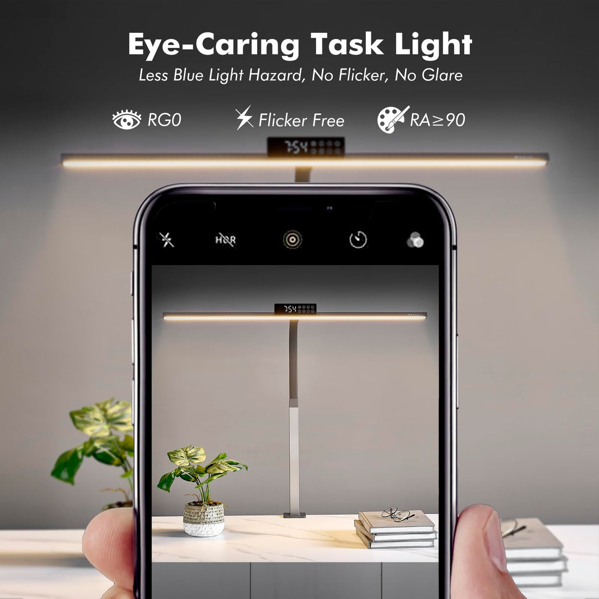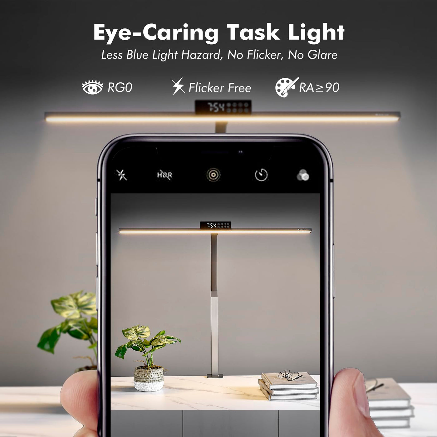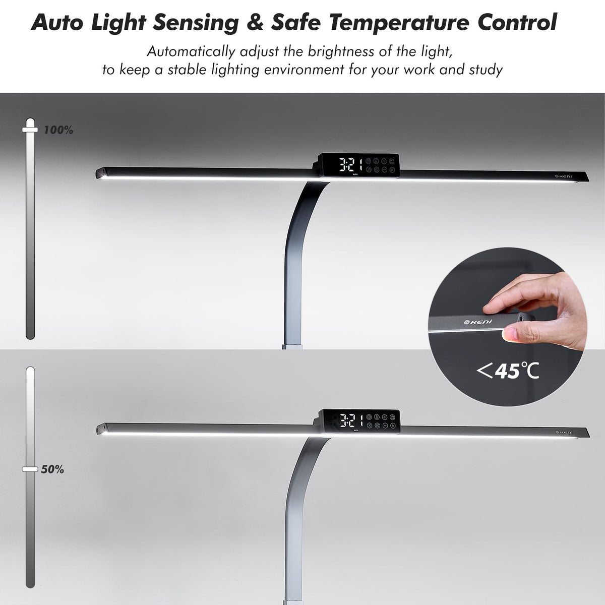 G Keni 3400 Lumen Architect Desk Lamp with Clock for Home Office, 25W Ultra Bright Auto-Fill Brightness Desk Light with Timer, Adjustable Gooseneck, Touch LED Table Light for Work/Study/Read (Clamp) L200A