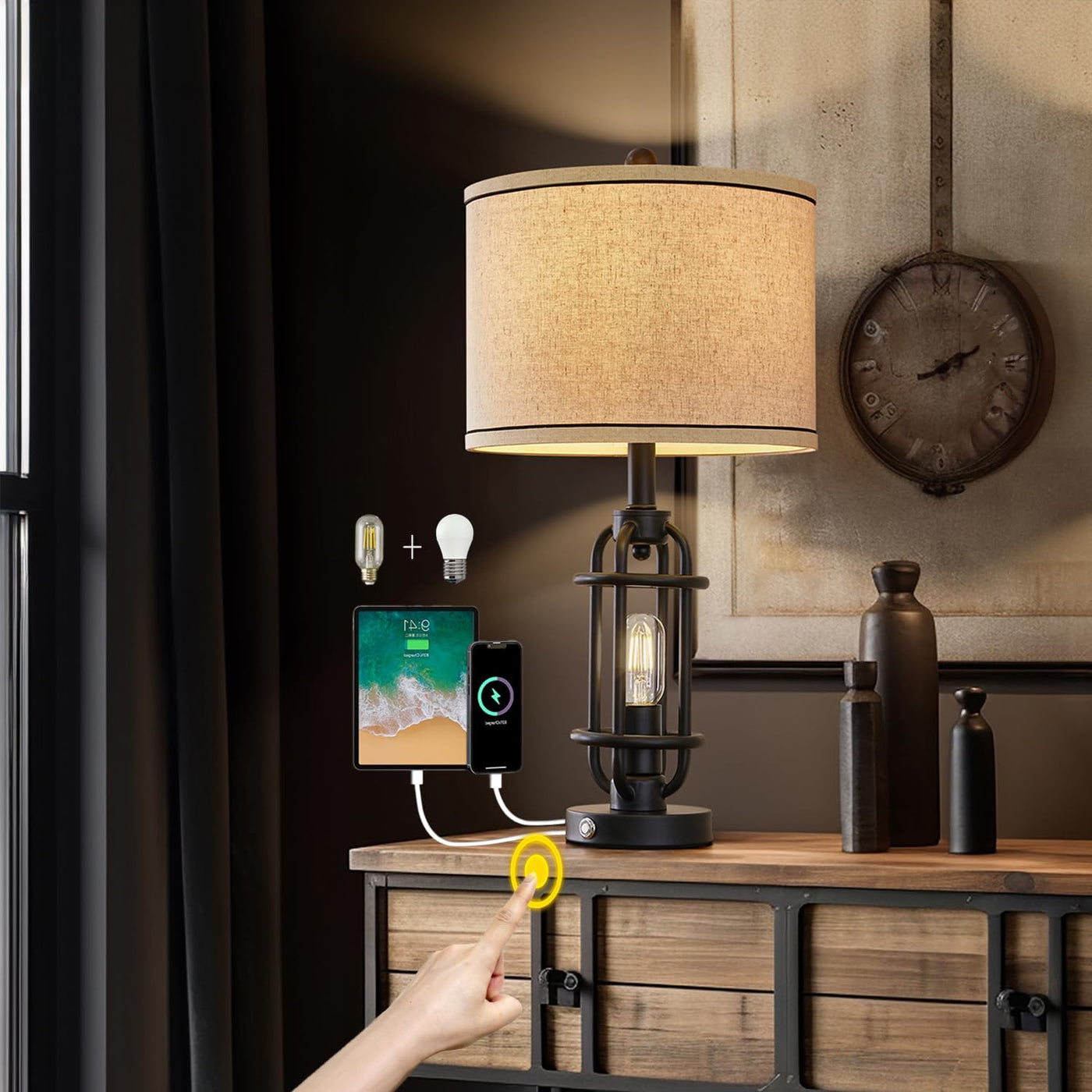 G-Safava 23.75'' Industrial Black Metal Table Lamp With Usb Ports For Living Room Decor