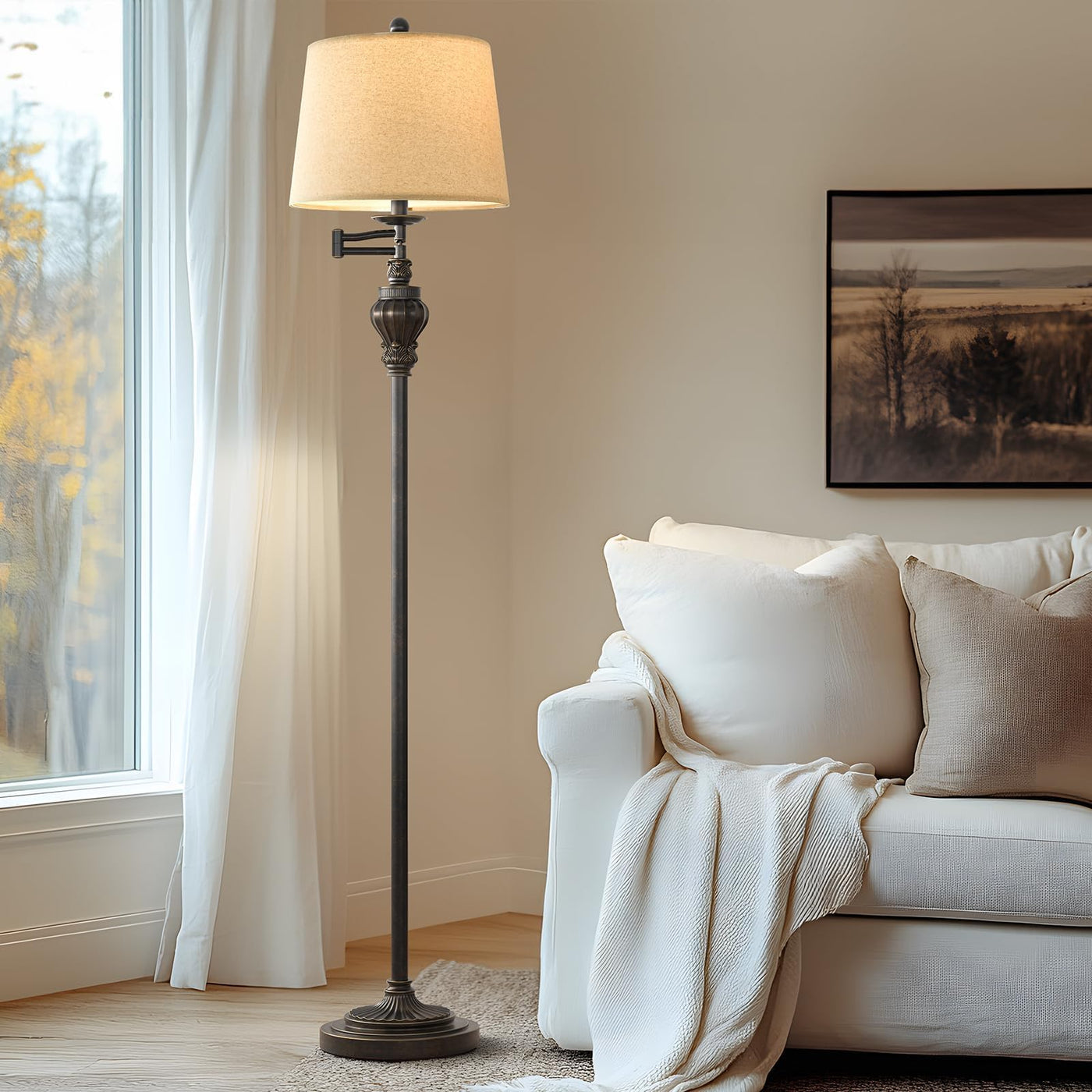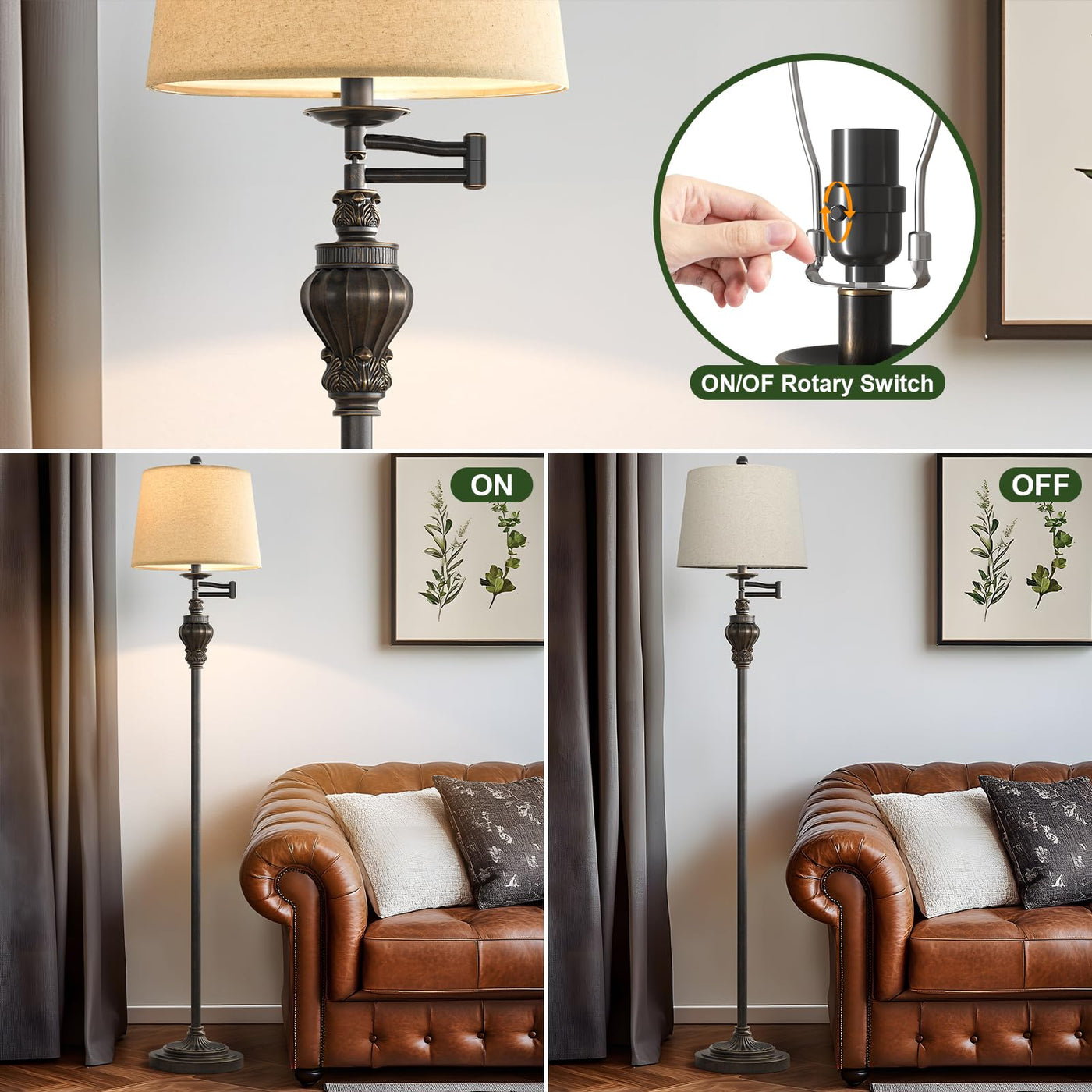 G-Safava 61'' Vintage Floor Lamp With 350 Adjustable Swing Arm, Standing Lamp For Bedroom Living Room Bedside Nightstand Retro F