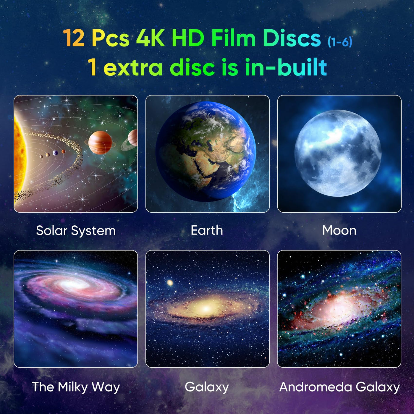 Galaxy Projector For Bedroom, Hd Image Star Projector Galaxy Light Adjustable Knob, 13 Film Discs Planetarium Projector For Kids