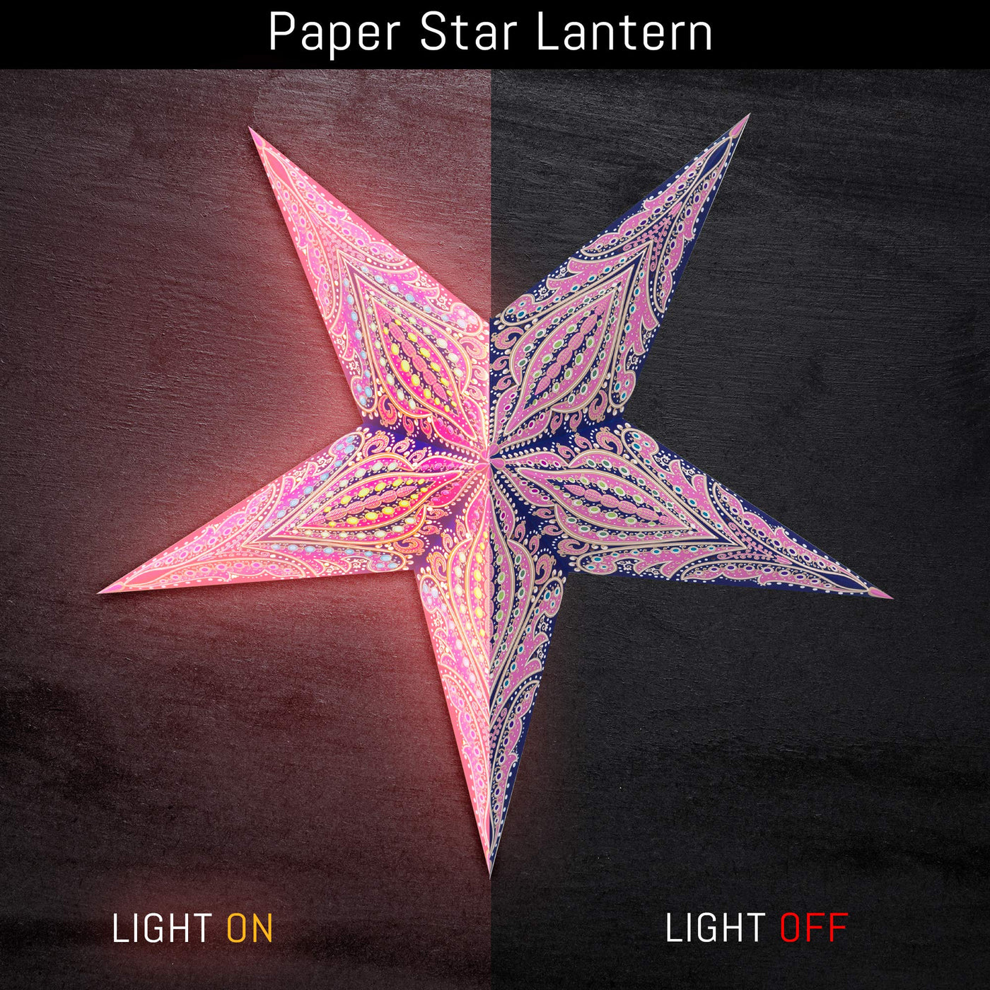 Our stars are made with paper and screen printed with multiple layers of paint. Cut-outs are covered with thin tissue paper to create the perfect glow. Each star is crafted to perfection with love and care, and inspected to ensure only the best quality. We have over 25 years of manufacturing experience. Don't forget to check out other designs by GalaxyArts.