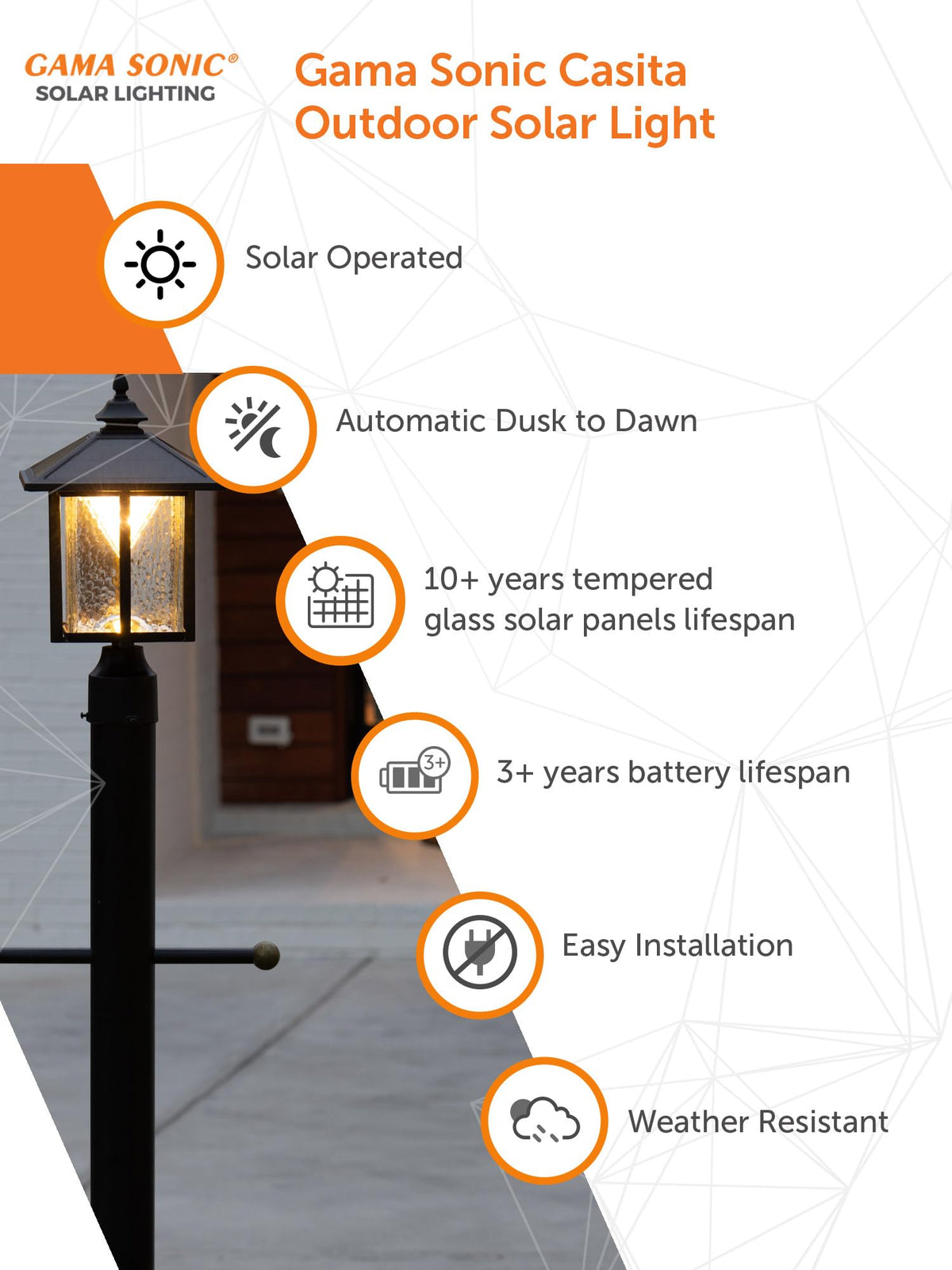 Elevate your outdoor lighting experience with the Gama Sonic Casita Solar Light and enjoy the perfect combination of functionality, durability, and style.