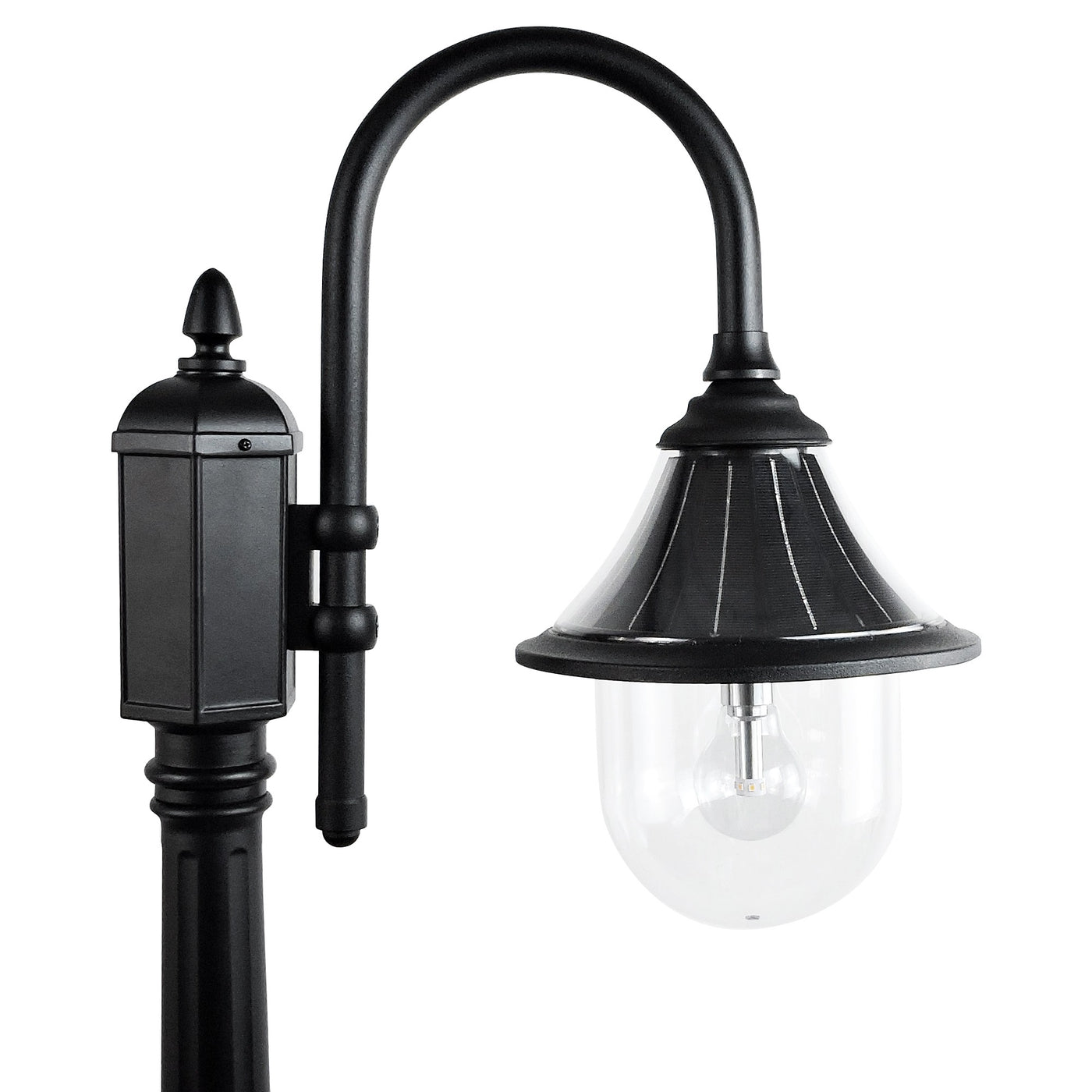 Q: What materials are used in the construction of the lamp post?A: The lamp post is constructed from weather-resistant, rust-resistant cast aluminum with a black finish, ensuring durability and longevity in various weather conditions.