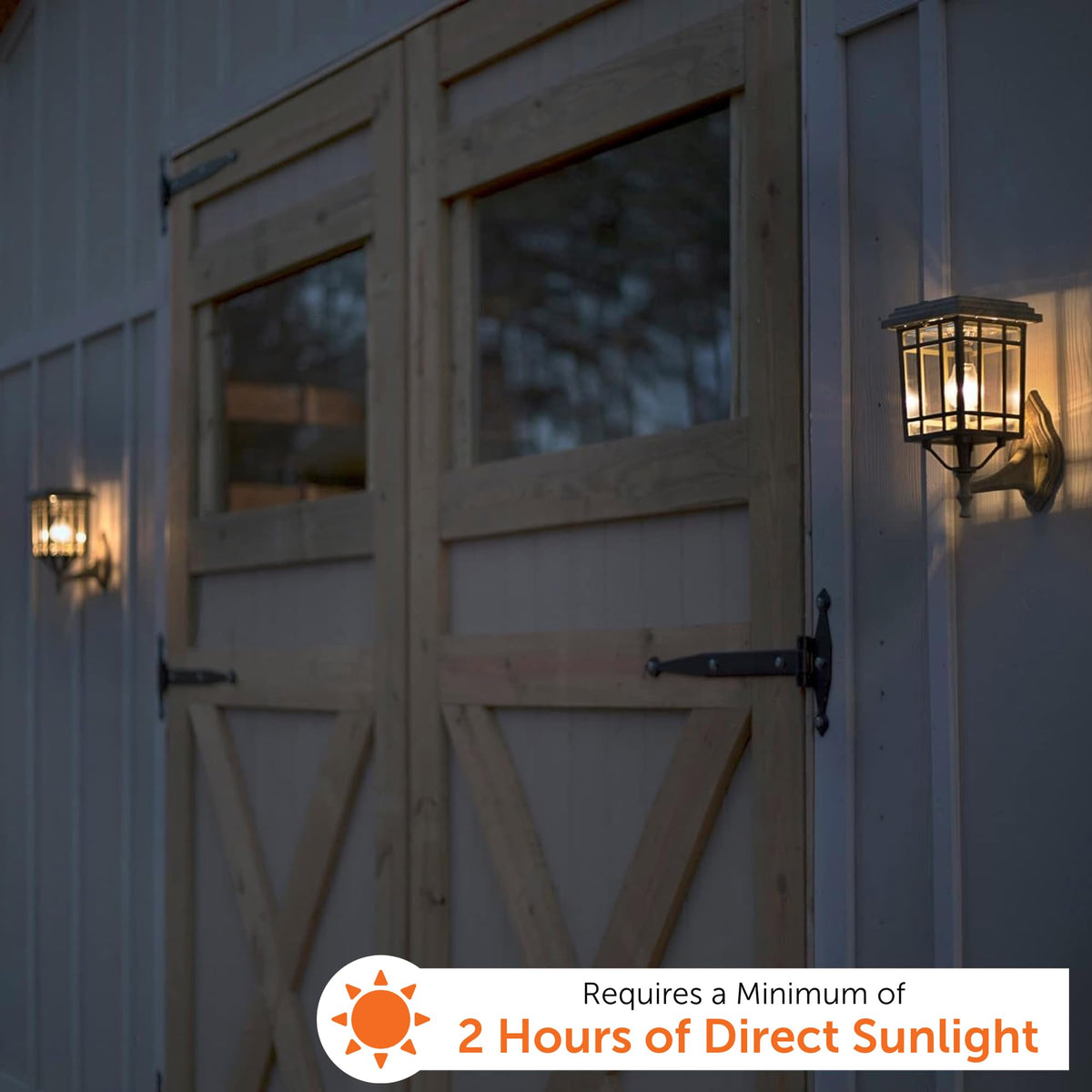 The Gama Sonic Prairie Bulb Solar Post Light / Wall Light GS-114B-FPW-BLK is a single lamp that features a rustic country design. This solar lamp post light / wall sconce includes three different mounting options: a post mount, pier/flat mount and wall sconce mount, giving you the flexibility to choose the best solar application for your outdoor solar light. Stylish and easy to install, this lamp post light / wall sconce is the perfect solar lighting solution for any outdoor space. Constructed of weather-resistant rust-resistant cast aluminum with a powder-coated black finish and flat grind glass panes, the Prairie Bulb solar powered post light / wall lantern incorporates our cutting-edge GS solar LED Light Bulb technology and provides 360-degree illumination. At dusk, this solar lamp provides an illumination of 50 Lumens in a warm white (2700K) color temperature for up to 12 hours on a full charge. No wiring is needed. Just place this solar light in a spot with ample direct sunshine and let the sun do the rest. This fixture is available in both black and weathered bronze color options.