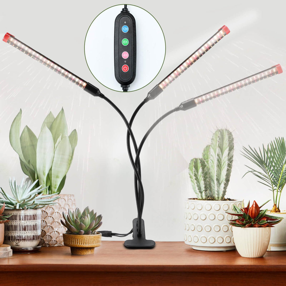 Q: How does the timer function work on this grow light?A: The grow light includes a convenient timer that allows you to set automatic on/off cycles for 4, 8, or 12 hours. This feature helps maintain a consistent lighting schedule, which is crucial for the healthy growth of seedlings and indoor plants.