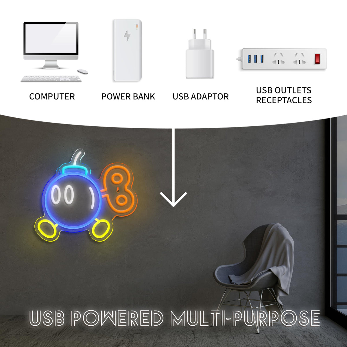 Bomb LED Neon light Sign for wall and room decor USB powered with on/off switch
