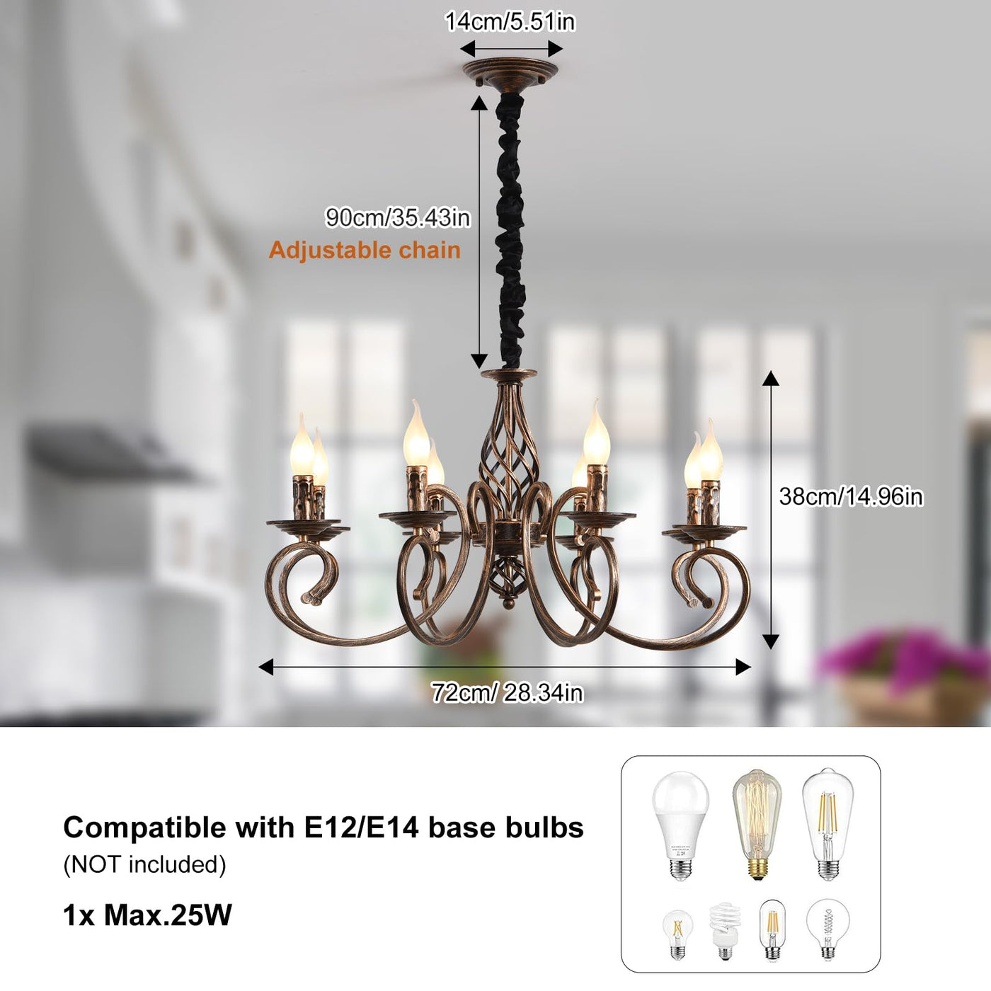 - **Dimmable Lighting**: Enjoy customizable lighting with a compatible dimmer switch (not included). This chandelier requires 8 x E12 base bulbs (max 40W, not included) for optimal illumination.