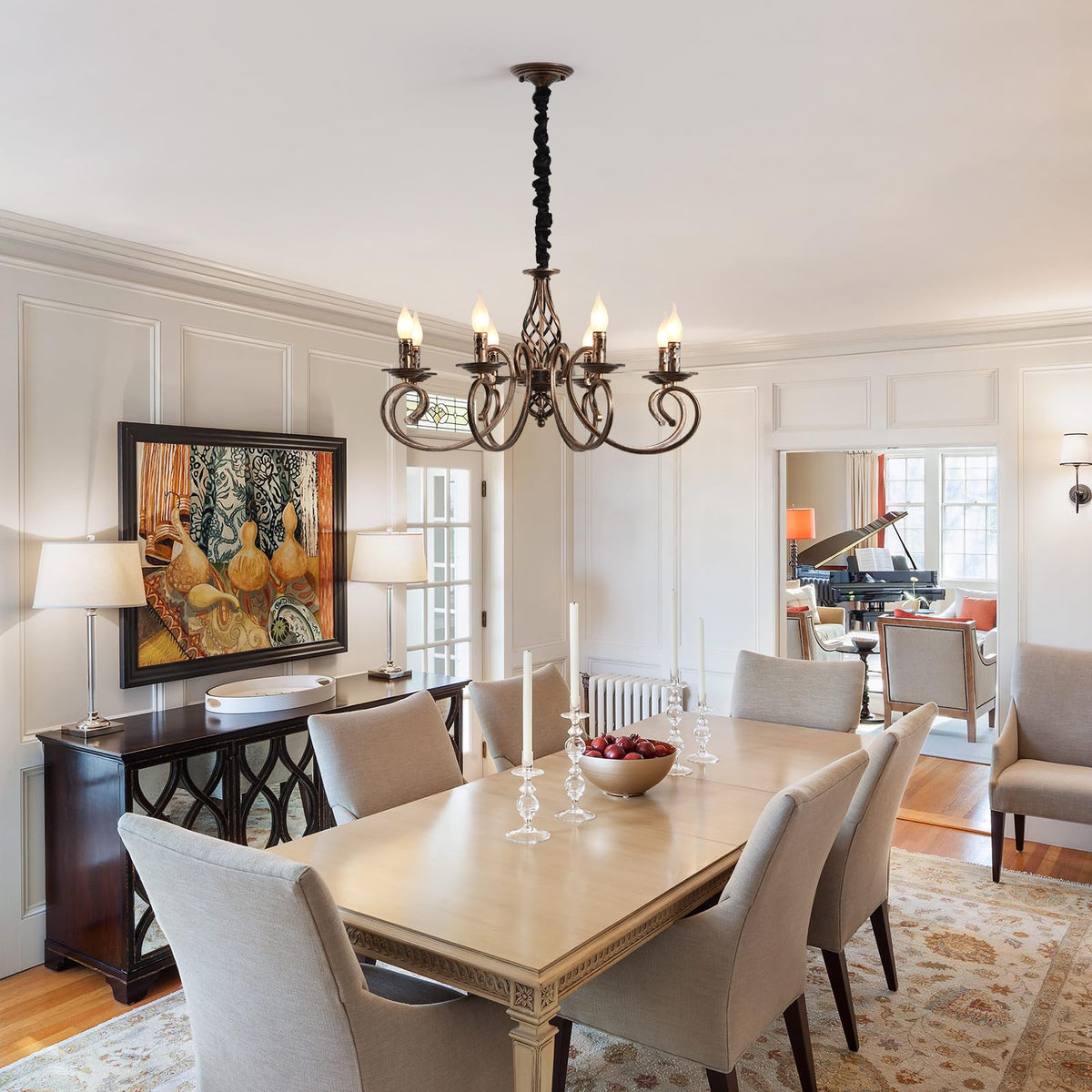 - **Durable Construction**: Crafted from high-quality wrought iron, this chandelier features a hand-painted bronze finish that adds a retro and rustic element to your space, ensuring longevity and style.