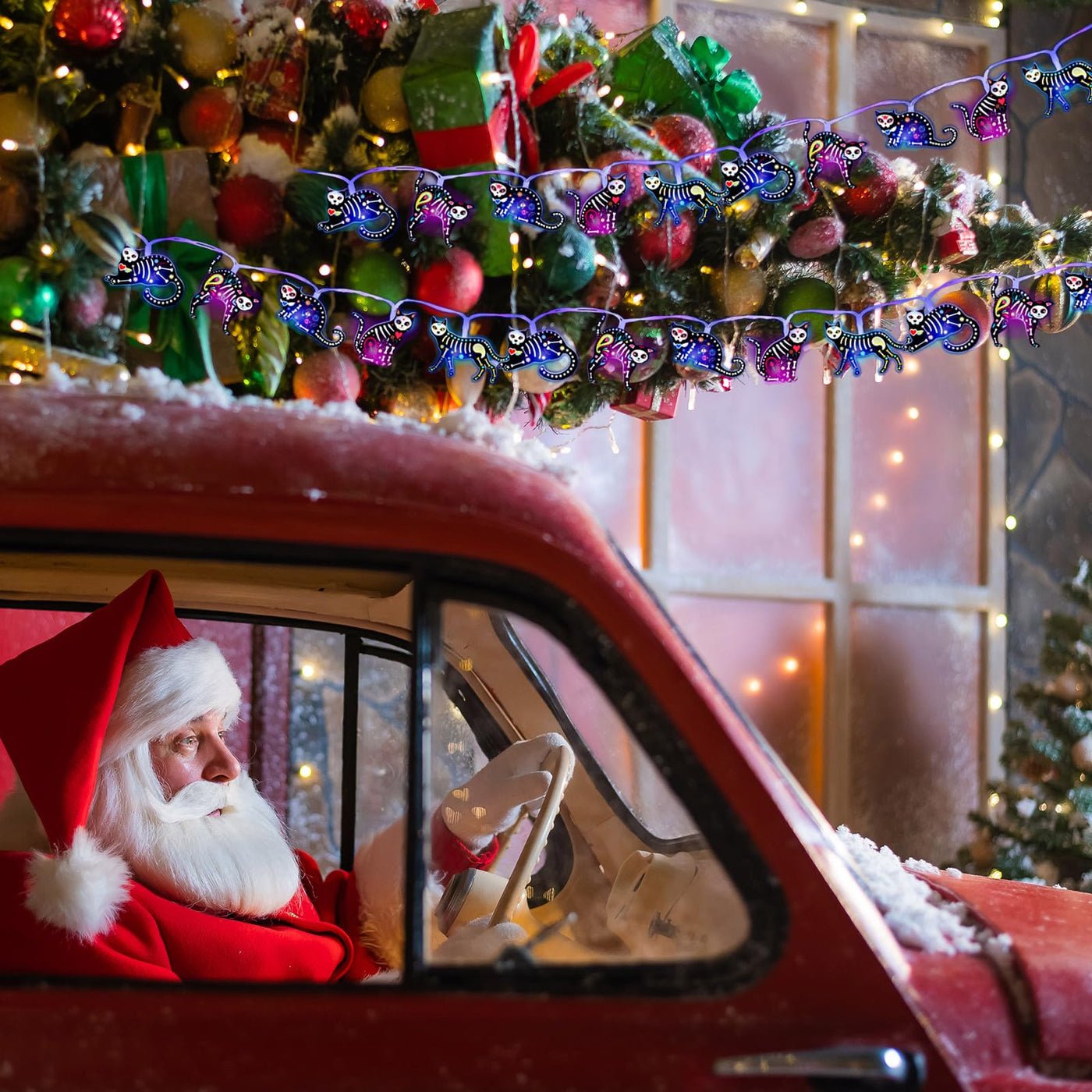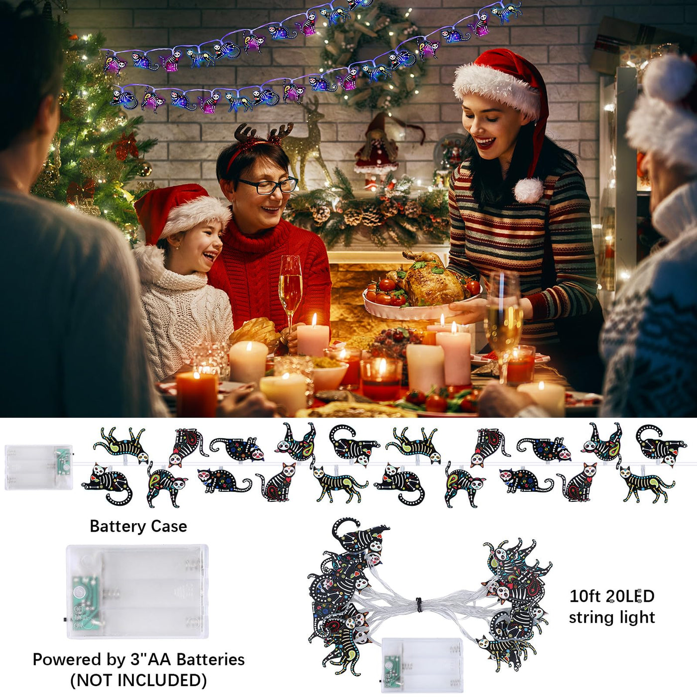 Ganeen Christmas Cat Decorations Christmas Cat Horror Ornaments for Tree 10 ft 20 LED LED Lights Battery Operated