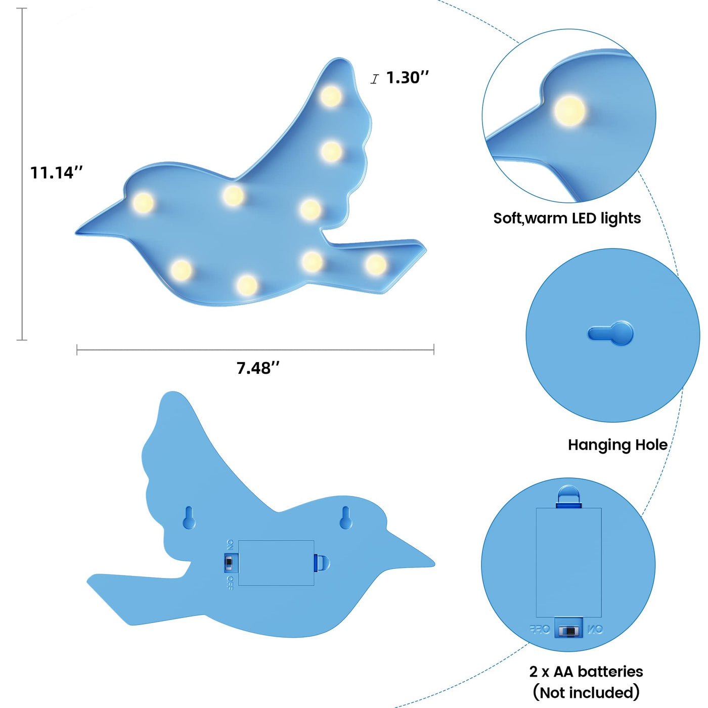 ?Night Light For Kids?This Is An Led Bird Shaped Night Light. The Portable Size, 2 * Aa Battery Power, And Hanging Hole Design Allow You To Easily Place Them Wherever You Want, And Even Carry Them Out. You Can Use It As A Kids Night Lights, Room Decor, And Party Decorations. It Can Add More Fun To You And Your Family. ?Hanging Hole Design?The Led Bird Night Light Has A Hanging Hole Design On The Back. You Can Not Only Put It On The Bedside Table As A Kids Night Light, But Also Hang It On The Wall As A Decoration For Kids Room Decor. ?Battery Powered Night Light?The Led Bird Night Light Is Powered By 2 Aa Batteries. The Battery Powered Design Allows You To Hang It On The Wall, Place It On The Bedside Table, Or Table At Will. You Can Use It More Easily To Decorate Your Kids Room And Tropical Party. ?Perfect Party Decorations?The Beloved Bird Shape Is Perfect For Party Decorations With Various Themes. You Can Use It For Your Pink Party Decorations, Party Animal Birthday Decorations, Animal Party Decorations, Princess Party Decorations. It Will Definitely Add More Fun To Your Party. ?Cute Kids Room Decor?Decorate Bird Night Lights On The Walls Of Children'S Rooms Or Place Them On The Bedside Table. Soft Lighting Can Accompany Children To Sleep And Bring Peace To Them. It Is Very Suitable As A Room Decoration For Various Styles, Such As Room Decor For Bedroom, Toddler Bedroom Decor, Kids Room Wall Decor, Nursery Wall Decor, Kids Night Lights For Bedroom, Baby Room Decor, Girls Room Decor, Wall Decor For Girls Bedroom.