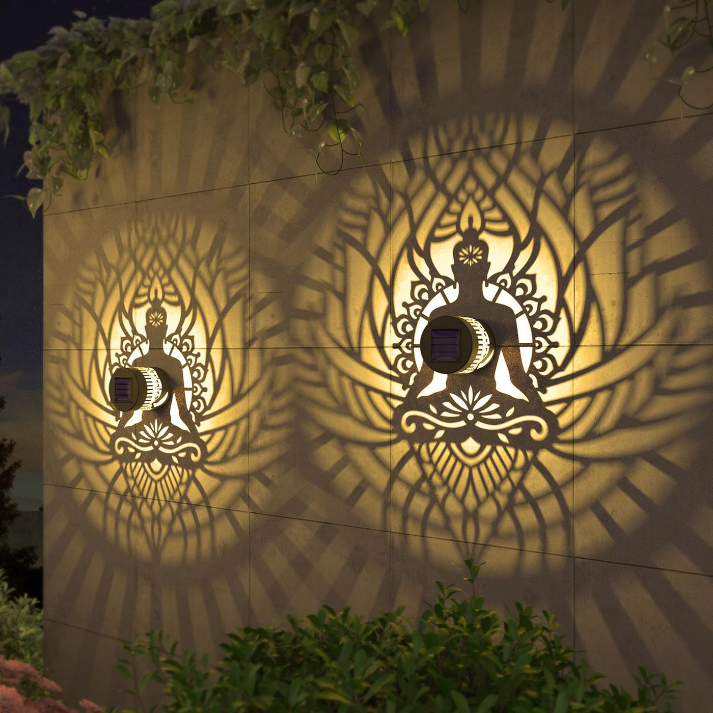 Gardencave Solar Fence Lights - 4 Pack Zen Theme Waterproof Outdoor Decor for Garden, Patio, Deck, Model Fence1