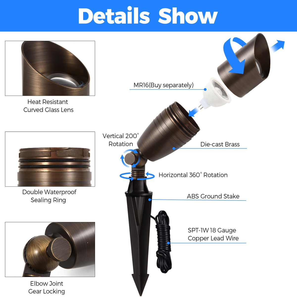 Gardencoin Solid Brass Outdoor Landscape Spotlights, 12V Heavy Duty Low Voltage Led Landscape Lights Waterproof For Garden Uplig