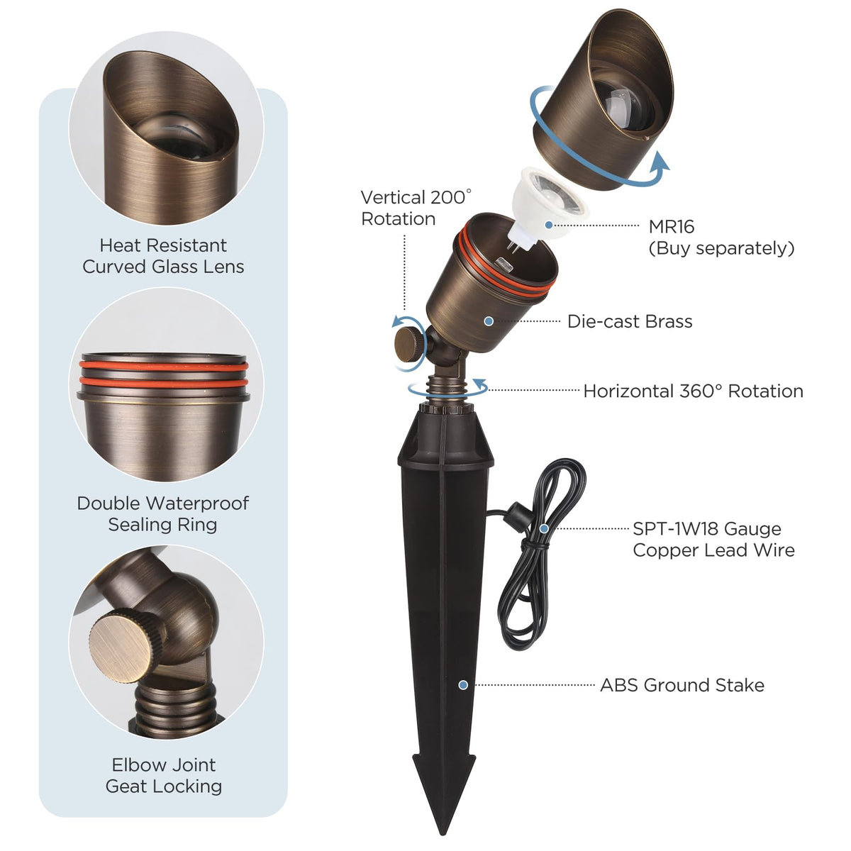 Gardencoin Solid Brass Outdoor Landscape Spotlights, 12V Led Low Voltage Landscape Lights For Garden And Yard, Bronze Heavy Duty