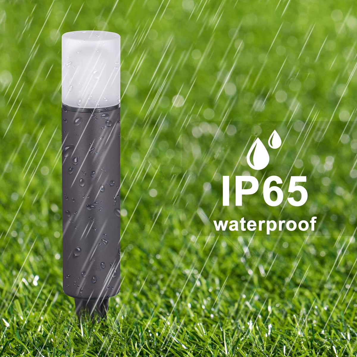 Q: What is the waterproof rating of these outdoor lights?A: These lights have a waterproof rating of IP65, making them suitable for all weather conditions and resistant to water pressure from irrigation and downpours.