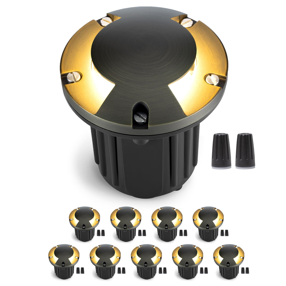Gardenreet Brass Anti-Glare Directional Landscape Well Lights With A Turret Top Are All About Blending In With Style. Made From Solid Brass With A Fancy Bronze Finish, The Led Low Voltage Outdoor In Ground Lights Are Tough Enough To Handle Any Weather, From Blazing Sunshine To Freezing Snow. And Because These Led Non-Rust In Ground Well Lights Are Ip65 Waterproof, They Won'T Let A Little Rain Get In The Way Of Lighting Up Your Outdoor Space. The 5W Metal Hard Wired Low Voltage Outdoor Landscape Lights With A Pvc Sleeve Runs On A Safe, Low Voltage Of 12V, So Kids And Pets Can Run Around The Yard Without Any Worries. Plus, These Driveway Lights Are Etl Certified, Which Means They'Re Safe. Whether You Pop In An Led Mr16 Bulb For Energy-Saving Or A Halogen Bulb For That Warm Glow, These Outdoor Electric Brass Landscaping In-Ground Lights Are Versatile. Think About How Cool Your Place Will Look With These Modern Brass In Ground Well Lights Shining On Your Path, Pathway, Walkway, Driveway, Sidewalk, Yard, Garden, Patio, Tree, Wall, Lawn, Or Backyard. They'Re Perfect For Your Yard, Making Your House The Talk Of The Street. These 12V Wired Brass Landscape Lighting Lights Up The Night With A Warm White 2700K Glow, Perfect For Outside Backyard Parties Or Just Chilling On The Porch. And These Exterior Decorative Garden Lights Are Not Just For Looks. They Keep Your Outdoor Areas Safe And Sound, Too. So, When You'Re Guiding Your Car Into The Driveway Or The Kids Are Playing Tag On The Lawn, These Hardwired, Durable Weatherproof Well Lights Will Keep Everything Bright And Clear. It'S All About That Welcoming Vibe, Making Your Outdoor Moments Even Better. These Driveway Lights And Inground Lights Are Perfect For Garden Decorations And Make Nice Housewarming Gifts.