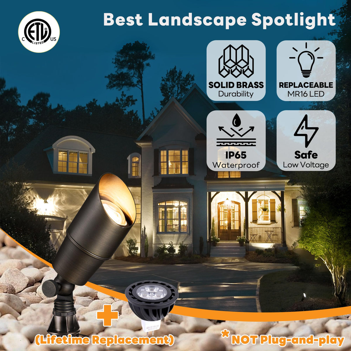 Gardenreet Brass Landscape Lighting - Outdoor Low Voltage Spotlights Led, 12V Wired Uplights, Waterproof Spot Lights, Antique Br