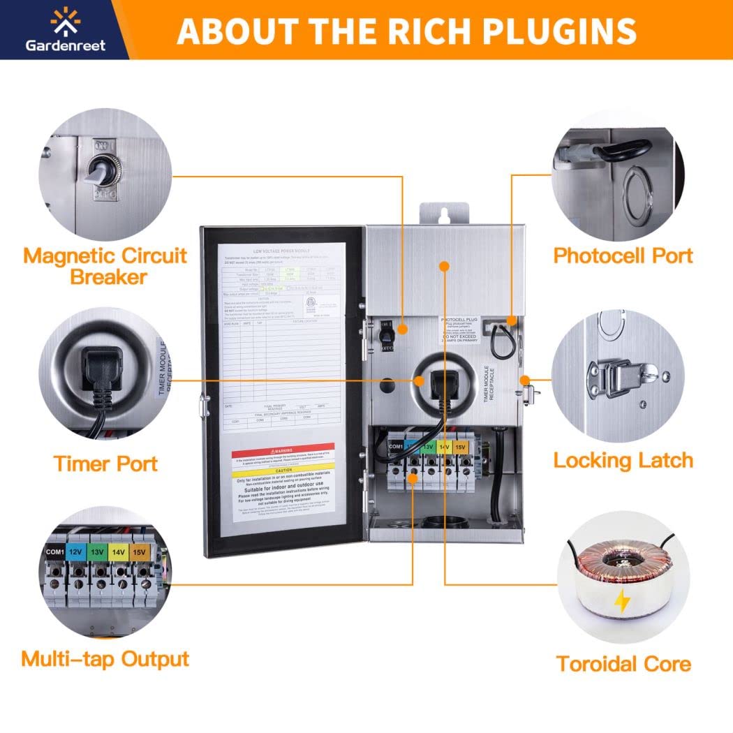 Gardenreet Brass Low Voltage Pathway Lights Kit(8 Pack) 12V Led With 150W Low Voltage Transformer And Mechanical Timer And 100 F