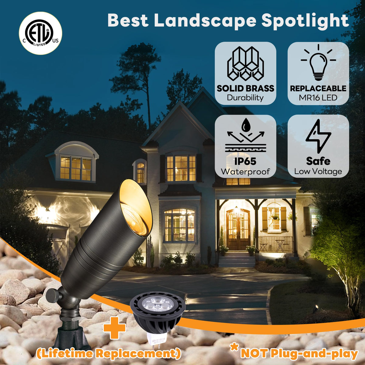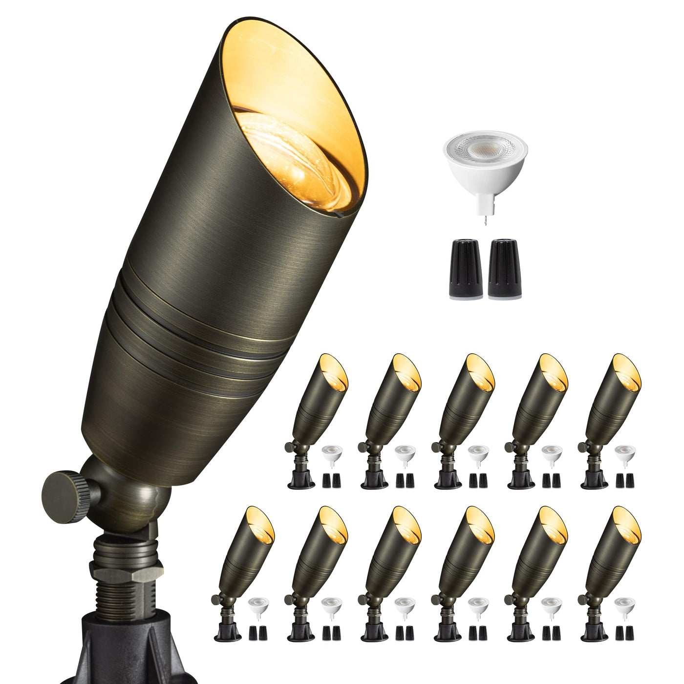 Gardenreet Die-Cast Brass Spot Light Outdoor - 12V Led Uplighting Waterproof, Low Voltage Landscape Lights Direct Wire, Bronze For Fence Fountain With Warm White Mr16 Replaceable Bulbs (12 Pack)