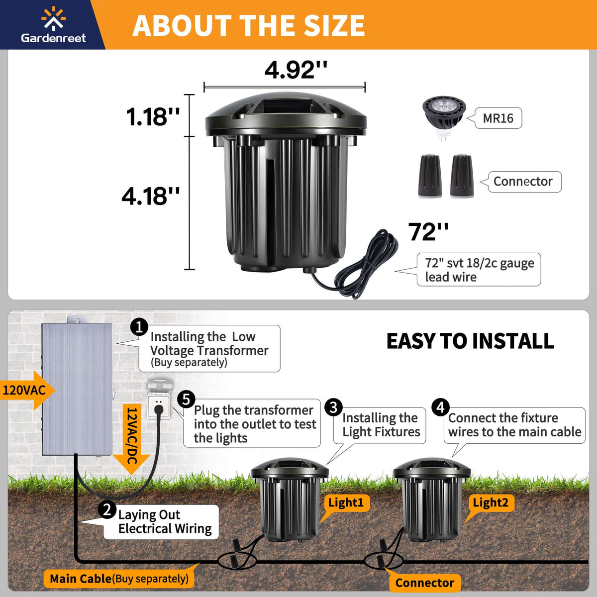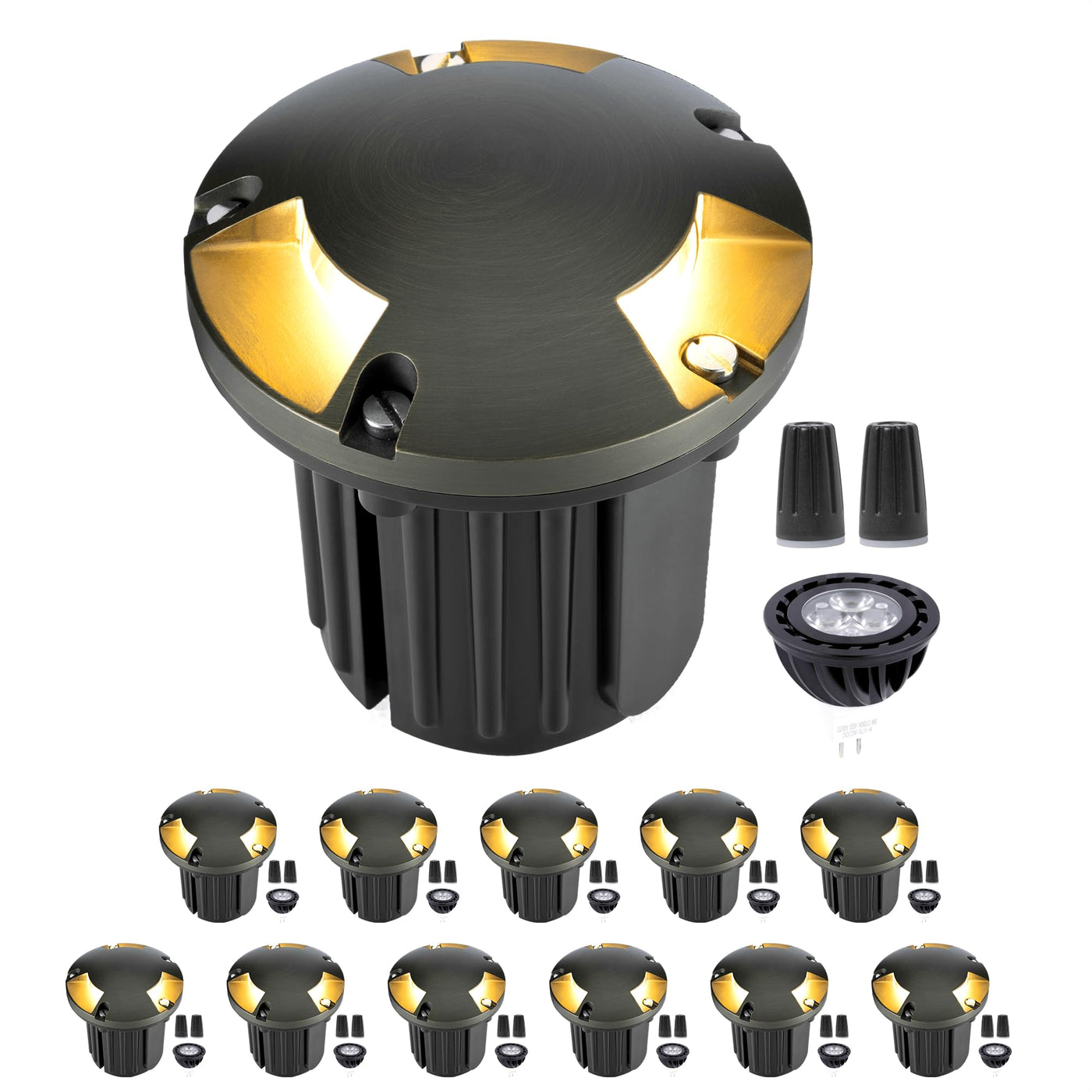 Gardenreet Brass Anti-Glare Landscape Well Lights Are All About Blending In With Style. Made From Solid Brass With A Fancy Bronze Finish, The Led Low Voltage Outdoor In Ground Lights Are Tough Enough To Handle Any Weather, From Blazing Sunshine To Freezing Snow. And Because These Led Non-Rust In Ground Well Lights Are Ip65 Waterproof, They Won'T Let A Little Rain Get In The Way Of Lighting Up Your Outdoor Space. The 5W Metal Hard Wired Low Voltage Outdoor Landscape Lights With A Pvc Sleeve Runs On A Safe, Low Voltage Of 12V, So Kids And Pets Can Run Around The Yard Without Any Worries. Plus, These Driveway Lights Are Etl Certified, Which Means They'Re Safe. Whether You Pop In An Led Mr16 Bulb For Energy-Saving Or A Halogen Bulb For That Warm Glow, These Outdoor Electric Brass Landscaping In-Ground Uplights Are Versatile. Think About How Cool Your Place Will Look With These Modern Brass In Ground Well Lights Shining On Your Path, Pathway, Walkway, Driveway, Sidewalk, Yard, Garden, Patio, Tree, Wall, Lawn, Or Backyard. They'Re Perfect For Your Yard, Making Your House The Talk Of The Street. These 12V Wired Brass Landscape Lighting Lights Up The Night With A Warm White 2700K Glow, Perfect For Outside Backyard Parties Or Just Chilling On The Porch. And These Exterior Decorative Garden Lights Are Not Just For Looks. They Keep Your Outdoor Areas Safe And Sound, Too. So, When You'Re Guiding Your Car Into The Driveway Or The Kids Are Playing Tag On The Lawn, These Hardwired, Durable Weatherproof Well Lights Will Keep Everything Bright And Clear. It'S All About That Welcoming Vibe, Making Your Outdoor Moments Even Better. These Driveway Lights And Inground Lights Are Perfect For Garden Decorations And Make Nice Housewarming Gifts.