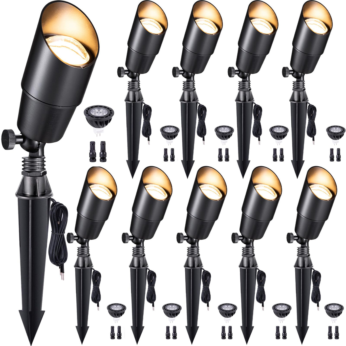- Q: Do I need a transformer for the Gardenreet LED Low Voltage Spotlight to work? A: Yes, the Gardenreet LED Low Voltage Spotlight operates at 9-17V low voltage and requires wiring to a transformer (not included). This setup helps ensure stable illumination and allows for the addition of more lights if needed.