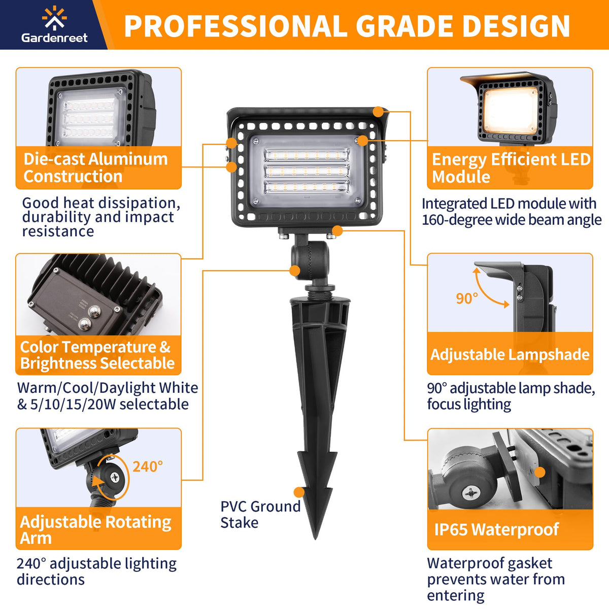 Transform Your Garden, Yard, Patio, Or Driveway With The Gardenreet Aluminum Low Voltage Landscape Flood Light. This Landscape Lighting Wall Wash Light Led Is Crafted Die-Cast Aluminum, This 12 Volt Landscape Flood Light Provides Durability And Elegance, Blending Seamlessly With Any Outdoor Setting. Whether You Want To Illuminate Your Home'S Exterior For Added Safety Or Create An Inviting Ambiance, This Landscape Gentle Flood Light Is An Exceptional Choice. Constructed From Aluminum, This Low Voltage Landscape Flood Light Is Highly Resistant To Rust And Corrosion. The Weathered Single Head Aluminum Outdoor Led Flood Luminaire Finish Gives A Sophisticated Black Look, While Its Ip65 Waterproof Rating Ensures Long-Lasting Durability In Any Weather Conditions. Whether Lighting Up Trees, Walls, Or Pathways, These Low Voltage Flood Landscape Lights Are Resistant And Reliable. Featuring Integrated Chips, You Can Select Warm White (3000K), Cool White (4000K), Or Daylight White (5000K) For Best Lighting Effect. This Professional, Powerful, Flexible,Blink, Mini 10 Watt Focus Light Ensures Your Garden Is Bright, The Fixture Beam With Its Adjustable Knuckle. The Low Voltage Tree Flood Lights Are Perfect For Surface Mount On The House Entry, Pathway, Path, Area, Flat, Pillar, Ground Or Landscaping At Night, Making Your Home The Envy Of The Neighborhood. Operates On 9V-17V Ac/Dc, These Low Profile 12V Led Outdoor Electric Flood Lights Offer Superior Lighting. The 5/10/15/20W Led Option Provides Ample Brightness While Keeping Energy Use Low. With Weatherproof Low Voltage Two Prong Landscape Accent Light Compatibility, This External Well Flood Light Landscape Adds Charm And Safety To Your Outdoor Living Space. Gardenreet'S Landscape Flood Lights Wire Are Made From Die-Cast Aluminum. This Hardwire Low Voltage Led Flood Lighting Outdoor Solution Is Reliable For Exterior Lamp Flood That Bring A Touch Of Class And Sophistication To Their Property.
