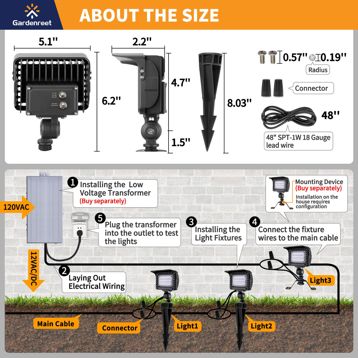 Q: How durable are these landscape lights in terms of lifespan and replacement?A: Constructed with sturdy materials and equipped with a waterproof gasket, these landscape lights are built for durability. Additionally, they can be easily connected with replacement parts, ensuring a long lifespan and quick replacement if needed.