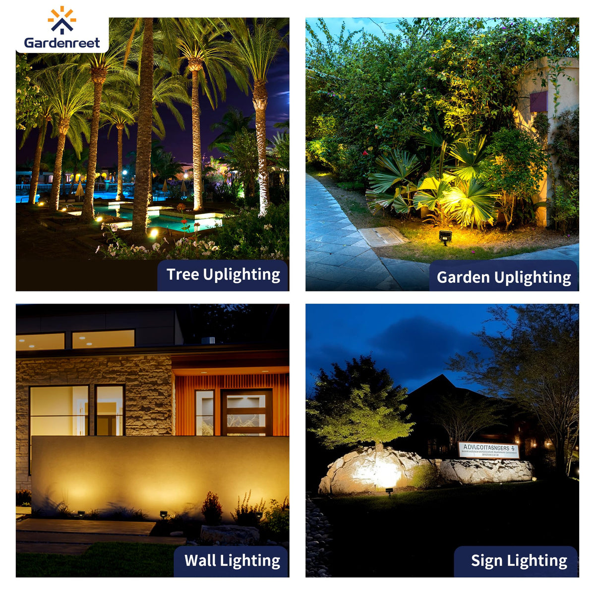 Q: What color temperatures are available for the Gardenreet LED Wall Wash Lights?A: The Gardenreet LED Wall Wash Lights offer adjustable color temperatures of 3000K (Warm White), 4000K (Cool White), and 5000K (Daylight White), allowing you to customize the lighting to suit your preferences and outdoor setting.