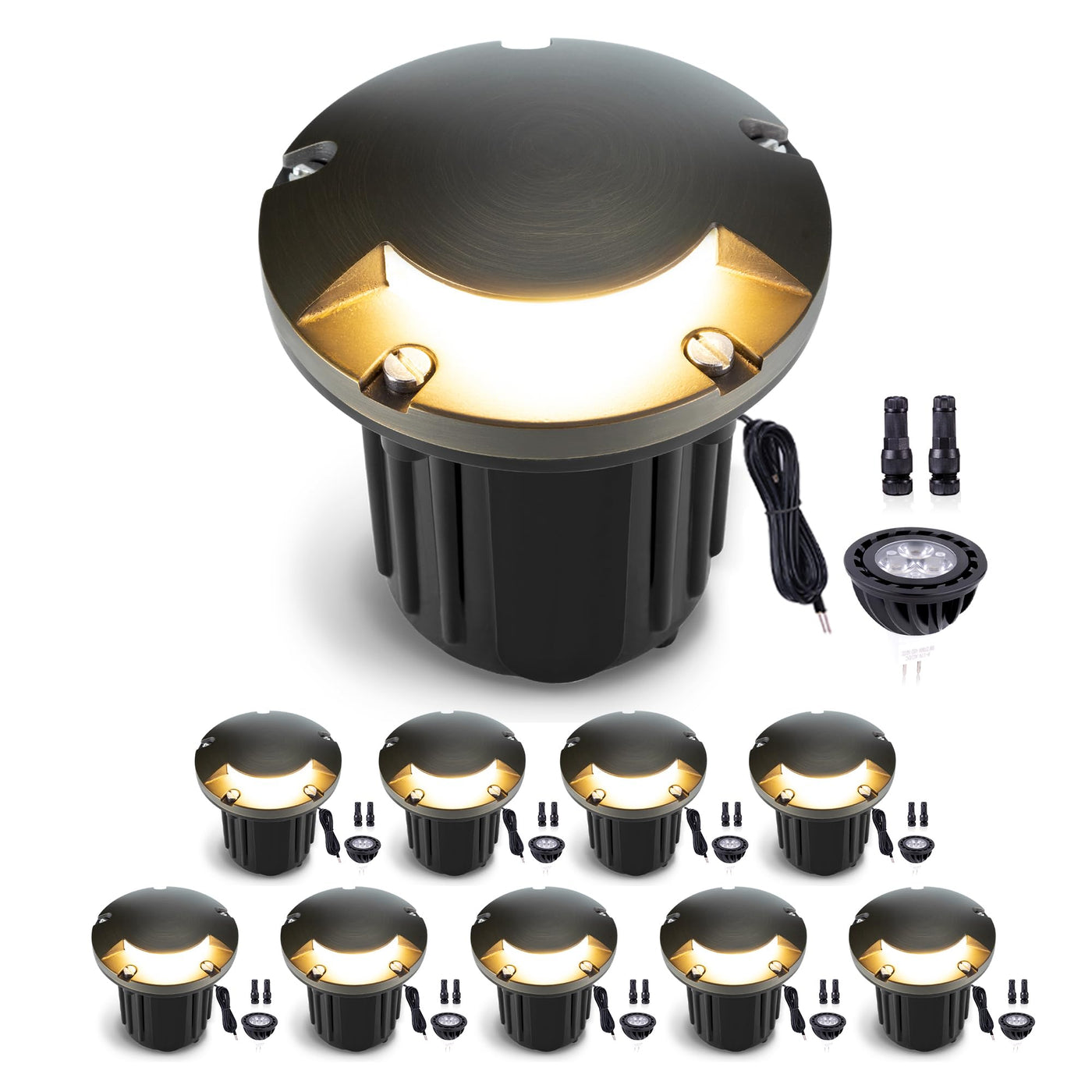 Gardenreet Led Well Lights Low Voltage - Brass In-Ground Ip65 Weatherproof 12V Lighting, Electric Light, Antique Bronze For Yard