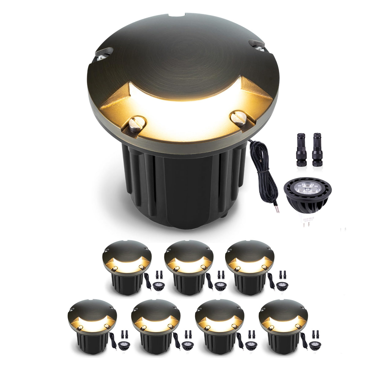 Gardenreet Brass Anti-Glare Directional Landscape Well Lights With A Turret Top Are All About Blending In With Style. Made From Solid Brass With A Fancy Bronze Finish, The Led Low Voltage Outdoor In Ground Lights Are Tough Enough To Handle Any Weather, From Blazing Sunshine To Freezing Snow. And Because These Led Non-Rust In Ground Well Lights Are Ip65 Waterproof, They Won'T Let A Little Rain Get In The Way Of Lighting Up Your Outdoor Space. The 5W Metal Hard Wired Low Voltage Outdoor Landscape Lights With A Pvc Sleeve Runs On A Safe, Low Voltage Of 12V, So Kids And Pets Can Run Around The Yard Without Any Worries. Plus, These Driveway Lights Are Etl Certified, Which Means They'Re Safe. Whether You Pop In An Led Mr16 Bulb For Energy-Saving Or A Halogen Bulb For That Warm Glow, These Outdoor Electric Brass Landscaping In-Ground Lights Are Versatile. Think About How Cool Your Place Will Look With These Modern Brass In Ground Well Lights Shining On Your Path, Pathway, Walkway, Driveway, Sidewalk, Yard, Garden, Patio, Tree, Wall, Lawn, Or Backyard. They'Re Perfect For Your Yard, Making Your House The Talk Of The Street. These 12V Wired Brass Landscape Lighting Lights Up The Night With A Warm White 2700K Glow, Perfect For Outside Backyard Parties Or Just Chilling On The Porch. And These Exterior Decorative Garden Lights Are Not Just For Looks. They Keep Your Outdoor Areas Safe And Sound, Too. So, When You'Re Guiding Your Car Into The Driveway Or The Kids Are Playing Tag On The Lawn, These Hardwired, Durable Weatherproof Well Lights Will Keep Everything Bright And Clear. It'S All About That Welcoming Vibe, Making Your Outdoor Moments Even Better. These Driveway Lights And Inground Lights Are Perfect For Garden Decorations And Make Nice Housewarming Gifts.