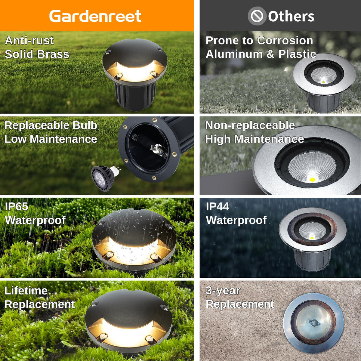 Gardenreet Mr16 Well Light - Solid Brass Low Voltage Weatherproof Replaceable Bulb Inground Lighting, Led 12V Electric Fixture,