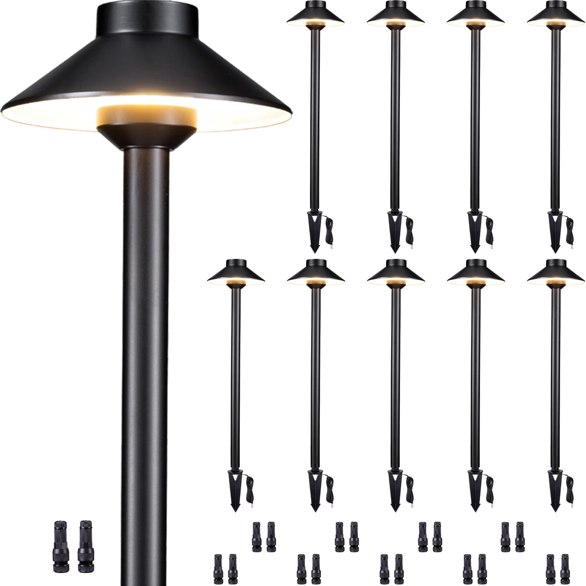 Gardenreet Solid Brass Landscape Path Lights - 12V Black Low Voltage Pathway Light Ip65 Waterproof, Outdoor Walkway Fixture Hardwired, Hat-Top For Patio Lawn G4 Bulb Not Included (10 Pack)