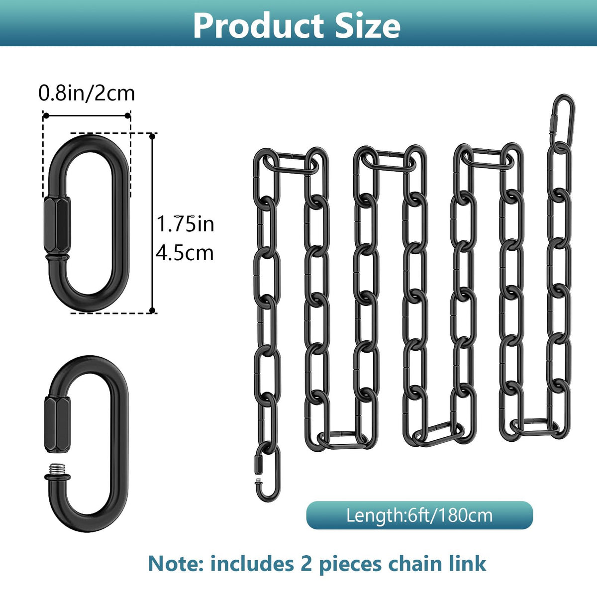 Garini 6 Feet Industrial Black Light Fixture Chain, Adjustable Metal Pendant Chandelier Chain Extension With Detachable Link, 4