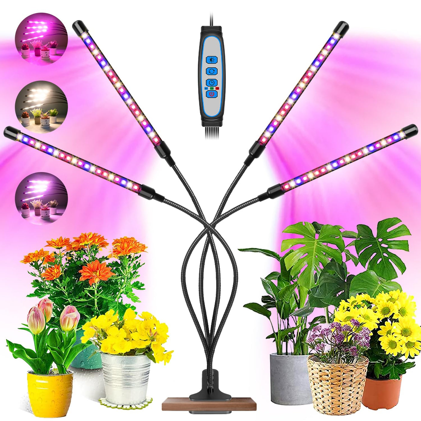 Garpsen Grow Lights For Indoor Plants, 80 Leds Full Spectrum Plant Light With Clip, 5 Dimming Levels & 3 Colors Grow Lamp With Timer 6/12/16H, 360° Adjustable Gooseneck For Seedlings And Succulents