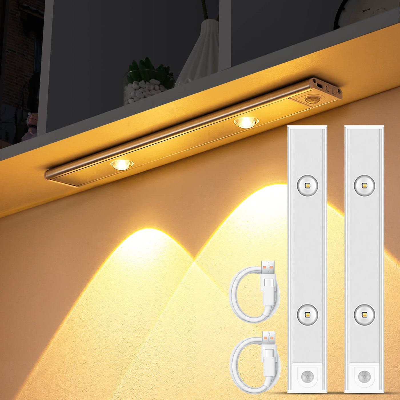 Garto Silver Led Under Cabinet Light 2 Pack - 11.81 Inch Motion Sensor Usb Rechargeable