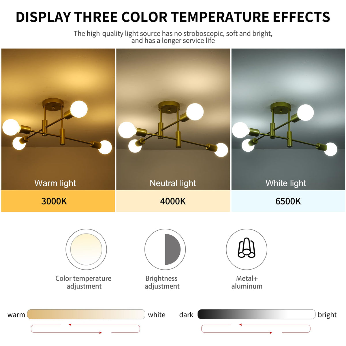 Unique 4-Lights Sputnik Chandelier Ceiling Light Will Be An Eye-Catching Highlight In Your House. ?Fixture Size? Diameter 20.1In/51Cm, H:9.4In/24Cm,Ceiling Canopy Diameter:4.72In/12Cm. Voltage:110V ?Modern Sputnik Chandelier? Sputnik Chandelier Adopts A Modern Design With 4 Multi-Directional Lamp Bases, 2 Different Length Rods And 2 Adjustable Arms. The Connecting Metal Arms For Installing Bulbs Can Be Rotatable. ?Mid-Century Indoor Ceiling Light Fixture? The Combined Design Of Black Lamp Body And Gold Lamp Cup Add Fashion To Your Applicable Spaces. Modern Ceiling Lamp Is Perfect For Living Room, Dining Room, Kitchen, Bedroom, Balcony, Foyer, Office, Bar, Cafe, Restaurant, Corridor, Hall, Entrance, Etc. ?High Quality Sputnik Light Fixture? This Chandelier Light Fixture Is Made Of High Quality Painted Iron And Electroplated Aluminum, Stable, Anti-Corrosive And Corrosion-Resistant. Light Arms Of Ceiling Pendant Light Adopts Black Spray Paint Technology And Light Cup Adopts Golden Electroplating Process, Durable And Not Easy To Rust. The Thickened Ceiling Plate Is Firm, Not Easy To Deform And Wear And Easy To Install. ?Easy To Installation? All Mounting Hardware Of Sputnik Chandeliers Are Included For Quick And Easy Installation. You Just Need To Fix Chandelier Lamp On The Ceiling With Installation Hardware And Adjust The Direction Of Light Arms. ?Warm Tips? 1.Do Not Connect Electricity Until Your Fixture Is Fully Assembled. 2.We Kindly Suggest You Contact A Professional Electrician Directly For Help, If You Do Not Understand How To Install. 3.The Product Size Will Have Small Errors Due To Manual Measurement, And The Actual Size Is The Main One. ?Package List? 1 X Ceiling Light 1 X Mounting Material 1 X Installation Manual