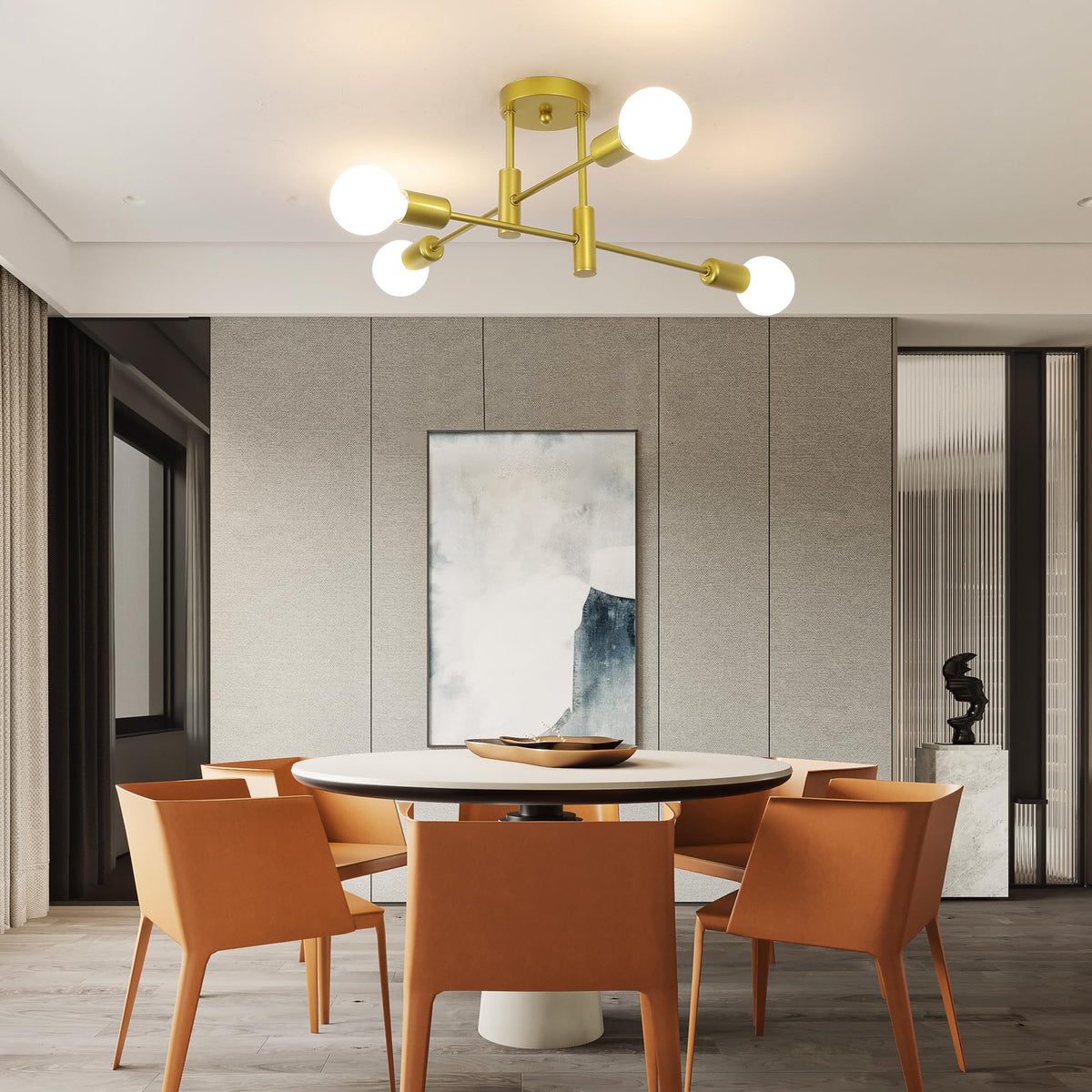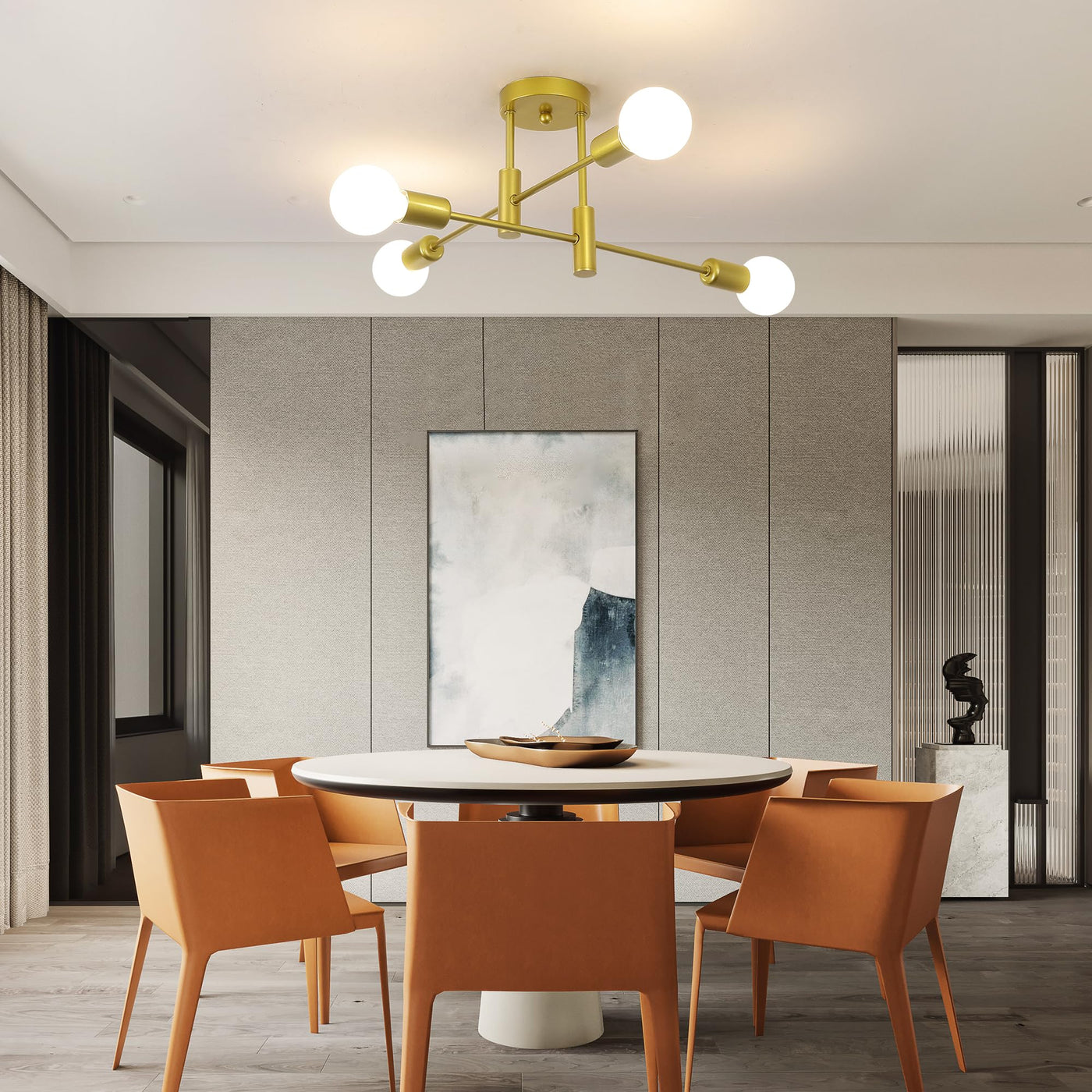 Garwarm 4-Light Sputnik Ceiling Light Modern Semi Flush Mount Ceiling Light Fixture Mid Century Gold Sputnik Chandelier For Kitc