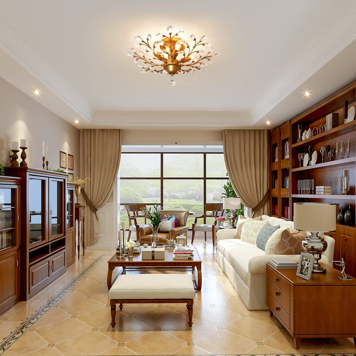 - **Luxury Design**: Features an impressive chandelier adorned with clear K9 crystals, exuding elegance and sophistication. The gold finish adds a touch of luxury, while the design complements various interior styles.