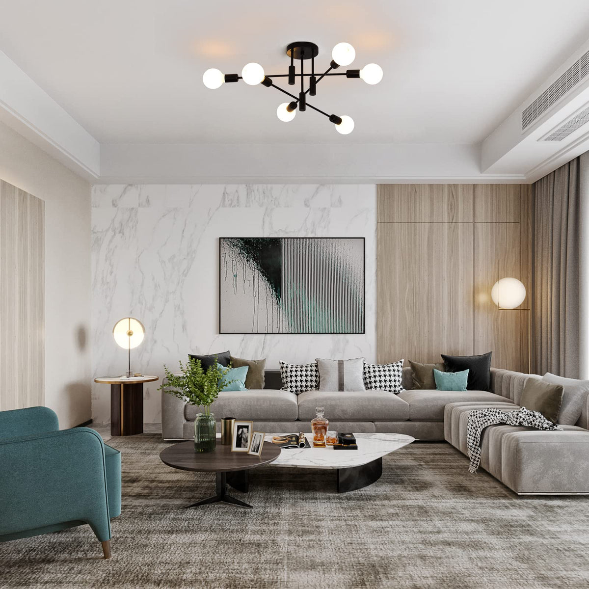 Q: Can this ceiling light fixture be used in various decor styles?A: Yes, the Garwarm Black Sputnik Ceiling Light features a modern and vintage design, making it versatile for different decor styles. It complements mid-century, industrial, and contemporary aesthetics, making it suitable for spaces like dining rooms, living rooms, and entryways.